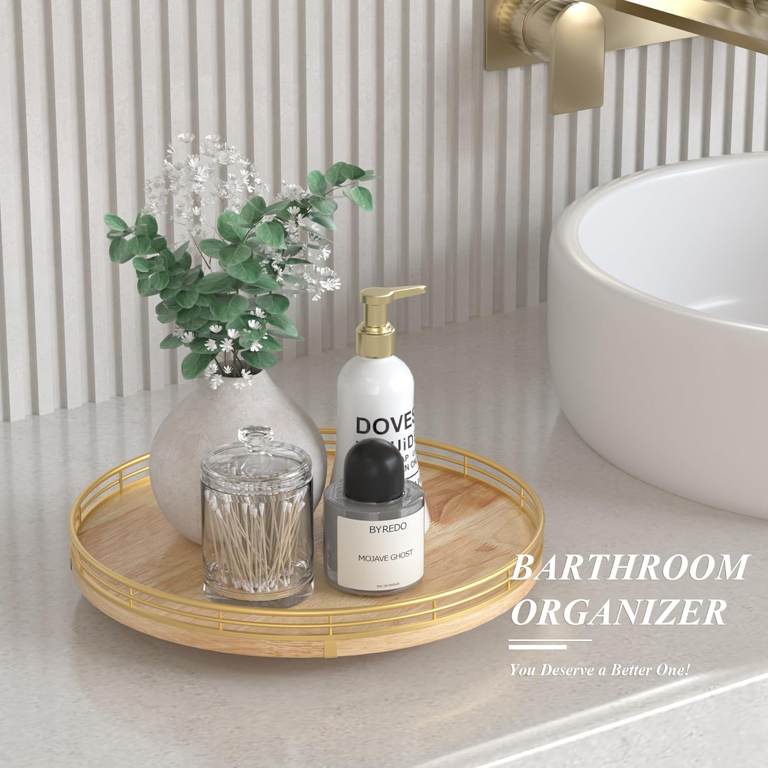 Farmhouse Oak 12" Lazy Susan Turntable Organizer for Cabinet, Round Wooden Lazy Susan Organization and Storage for Dining Table, Pantry, Kitchen, Countertop, Cupboard,Home Decor