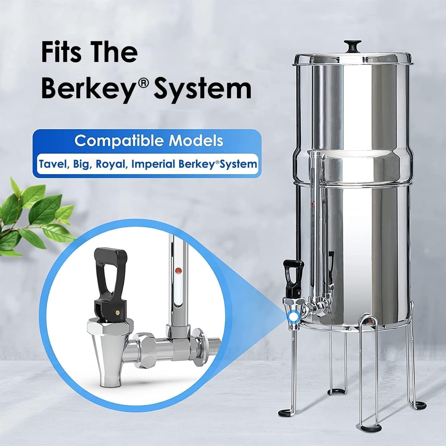 - Compatibility: The Waterdrop water level glass spigot is replacement for the Travel, Big, Royal, Imperial Berkey Water Filter System; Waterdrop King Tank Series; Alexapure Pro Water Filtration System; Purewell Water Filtration System. Please note that the spigot size does not compatible with Crown berkey.