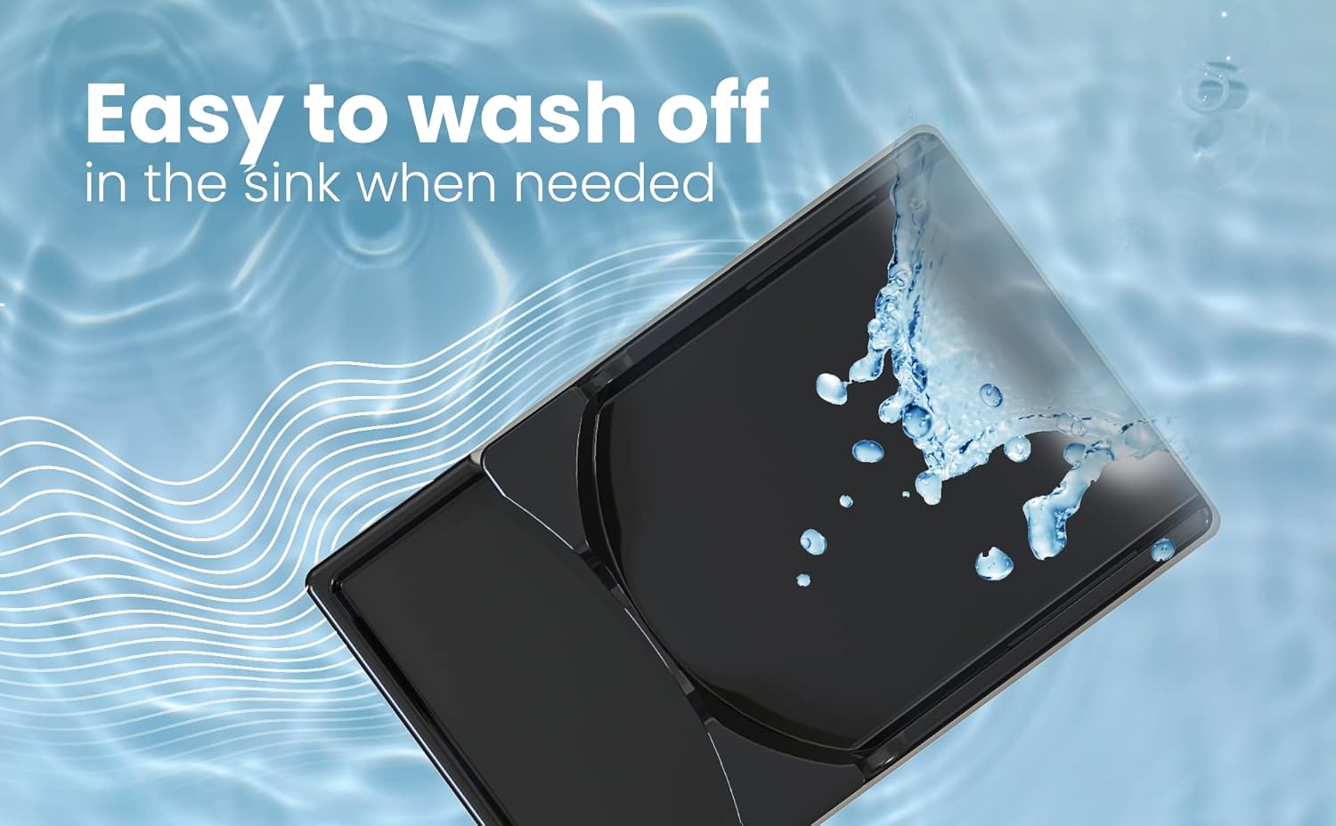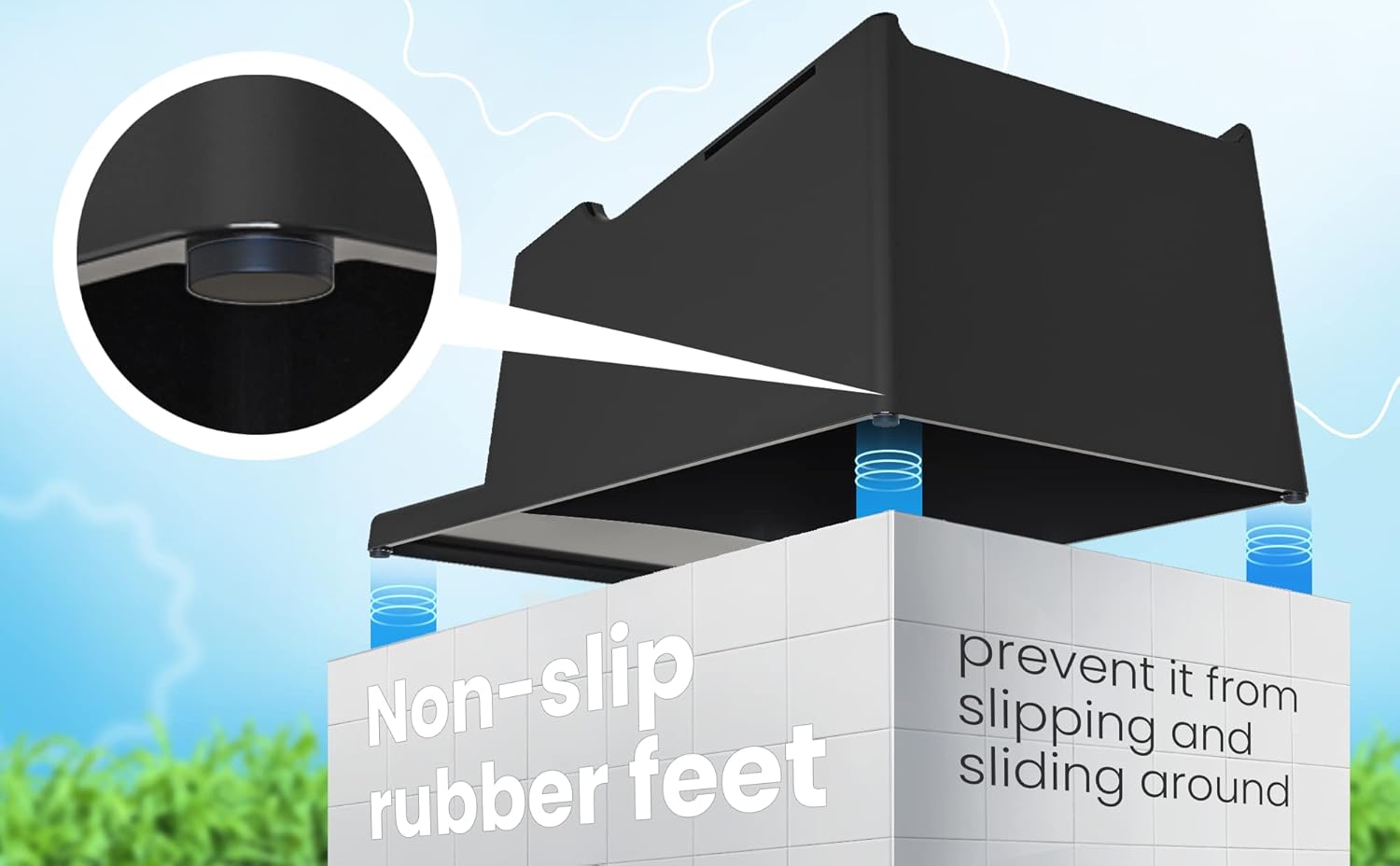 - [MATERIAL] - This Angled Laundry Detergent Holder is made of Plastic with a molded edge to keep the measuring cup from sliding or falling off the platform to prevent the soap or detergent from dripping onto the shelves or floor. There's also a "Rubber" in his feet to secure the soap station firmly in its place