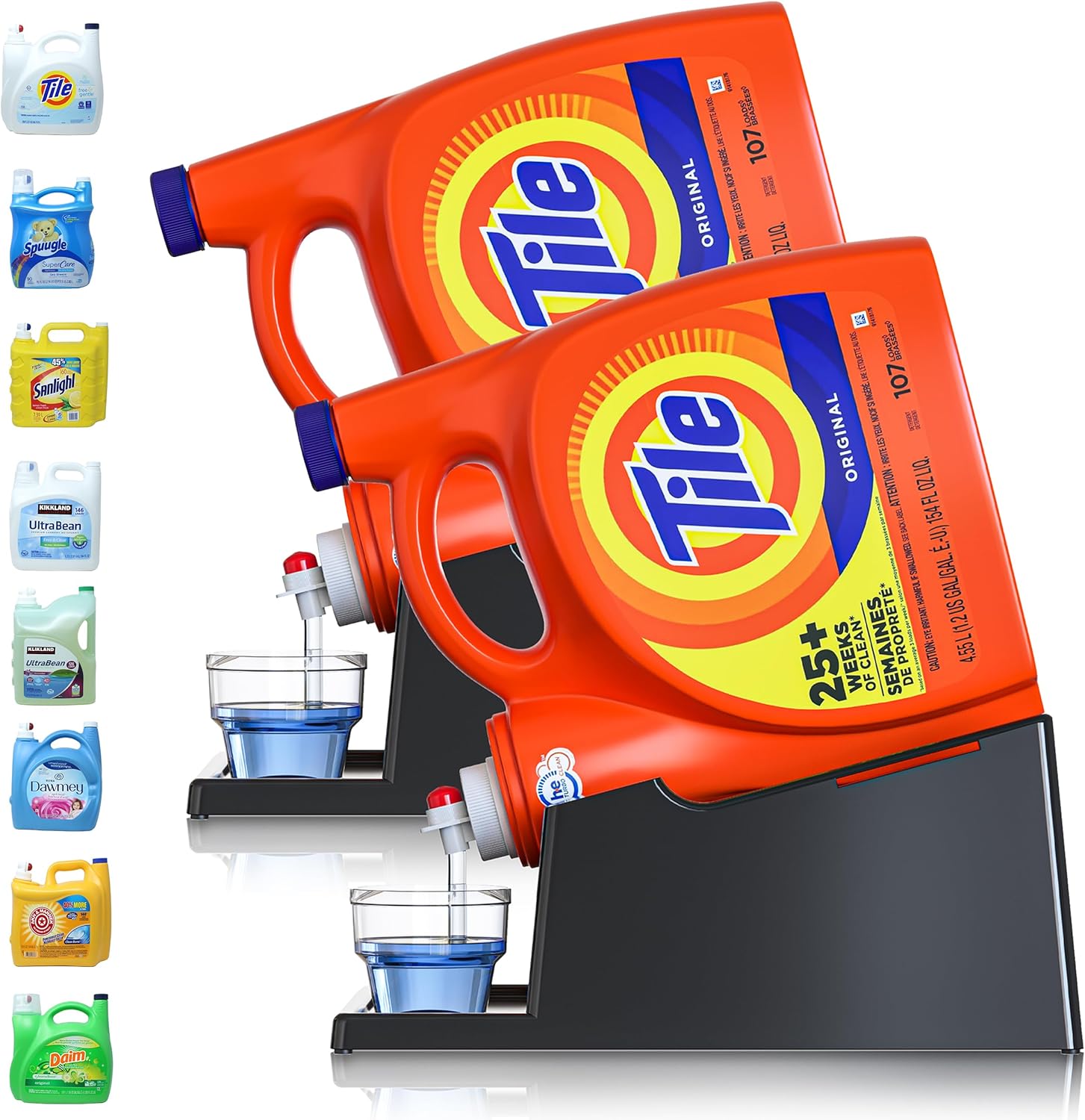 - [OUTSTANDING DESIGN] - This Laundry Detergent Holder has an "Angled" Feature. No need to tilt or lift the bottle. This Laundry Detergent Stand can help you to be more energy-saving at a cheap cost by using this item for both your detergent and fabric conditioner bottles as part of your daily Laundry Supplies