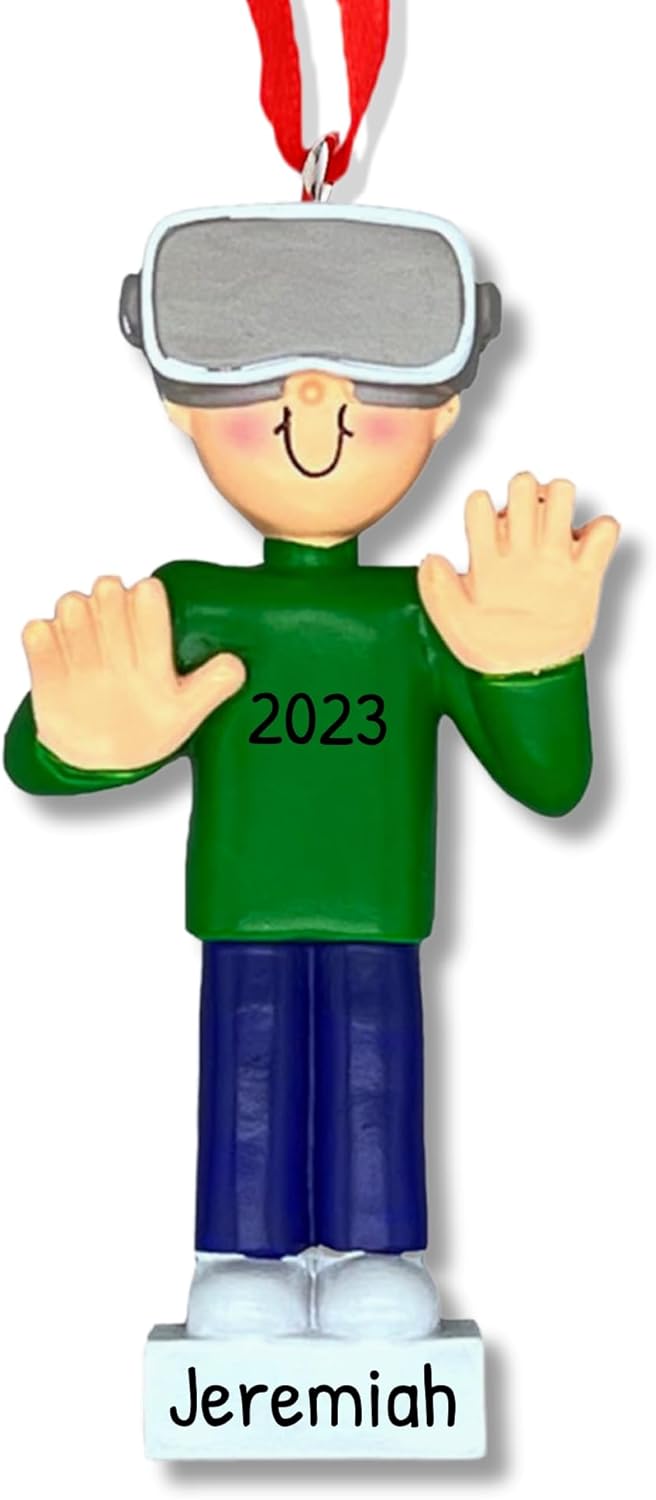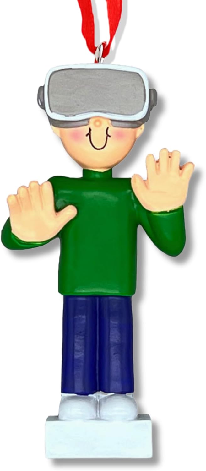 - DECORATIONS: Elevate your Christmas or special occasions with the Virtual Reality Male Blonde ornament. It brings a touch of technology and style to your decor.