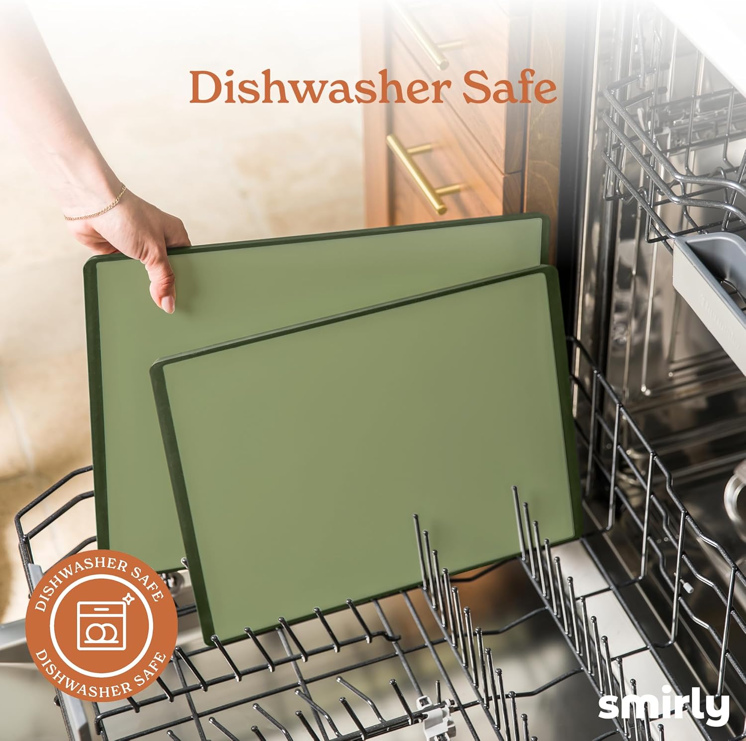 SMIRLY Plastic Cutting Board Set with Holder 3 Pieces, Non-Slip Dishwasher Safe Chopping Boards for Kitchen, Green