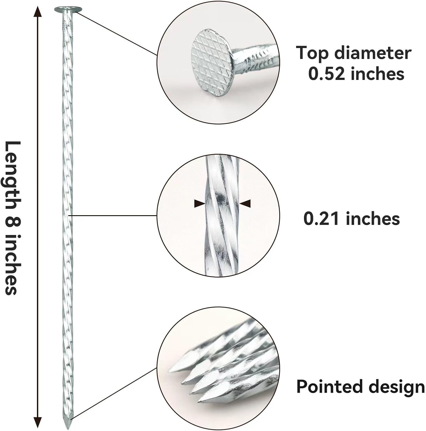 8" Heavy Duty Spiral Landscape Spikes - Solid Galvanized Metal Garden Stakes for Fixing Paver Edging, Weed Barriers, Artificial Turf, Tent and More (100 Pack)
