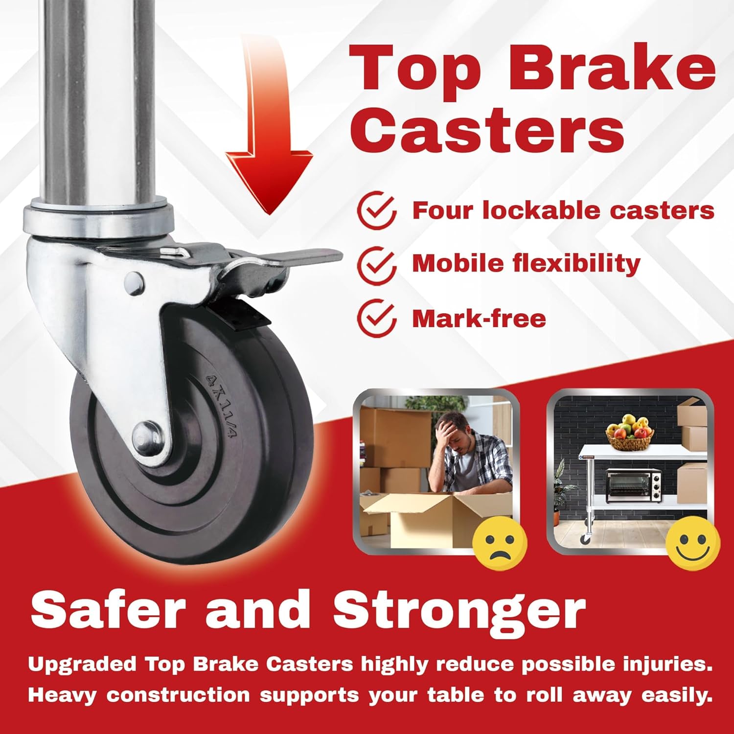 - Premium Design: The heavy-duty table with 18 gauge #430 stainless steel has extraordinary anti-corrosion abilities, which makes it stand decades. The superior weight capacity up to 500 lbs for the top