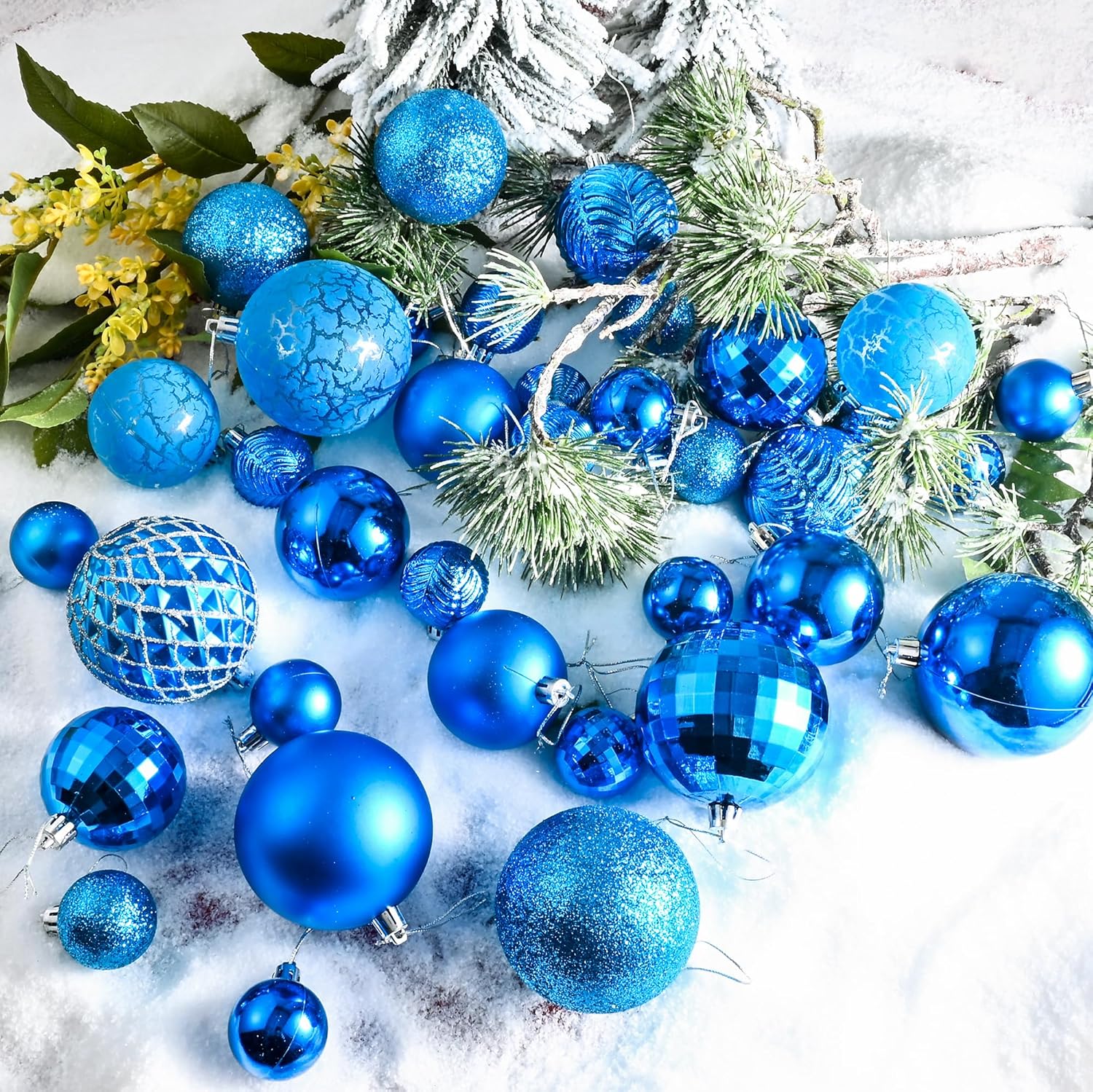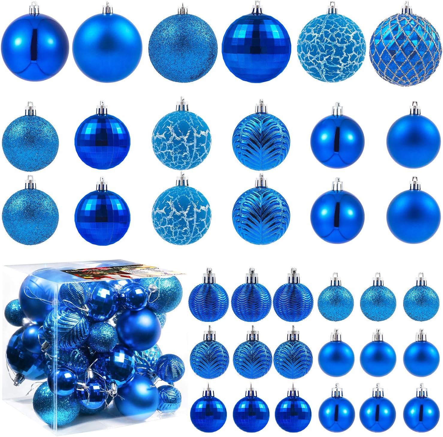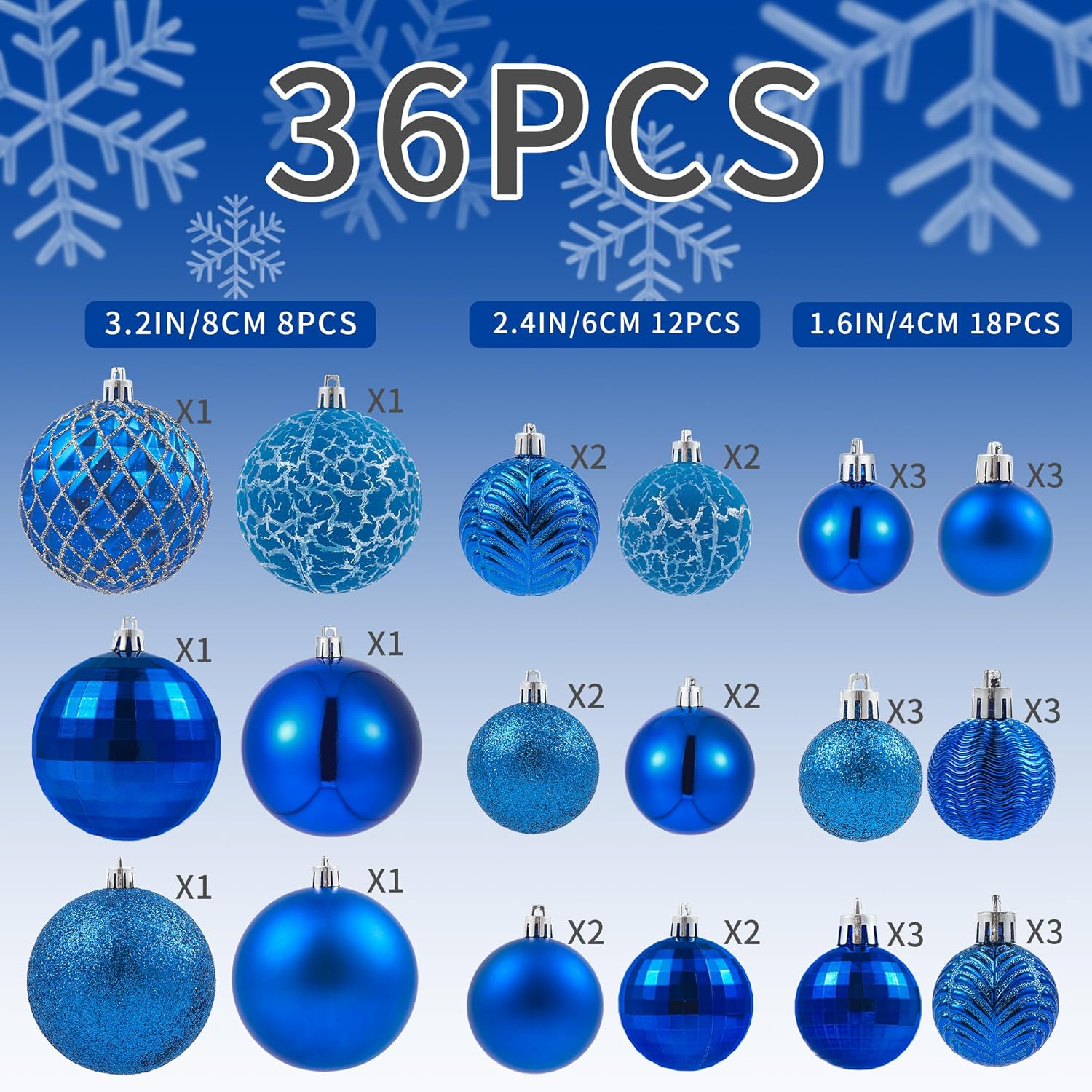 LANGXUN 36pcs Blue Christmas Tree Decorations Balls, Bolas De Navidad, 2025 Christmas Decor, Indoor Outdoor Shatterproof Christmas Ornaments, Xmars Party Wedding Suppiles