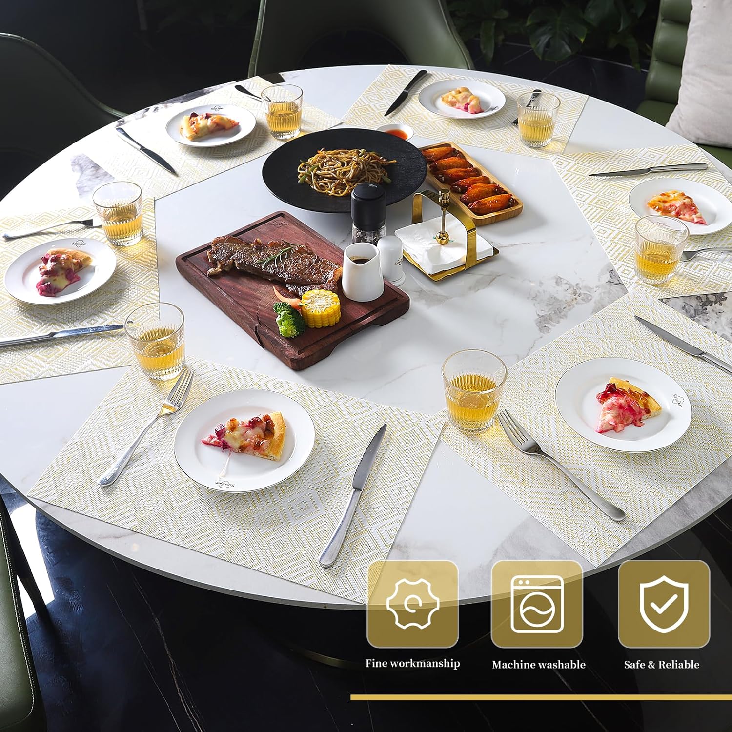 - 【Eco-Friendly Material】: EDanle placemats are made of high quality natural PVC/vinyl and polyester with long-lasting heat insulation and stain resistant features to provide protection for your table and prevent food residues and sauces from corroding the table and doilies for tables while adding fancy ambiance to your table