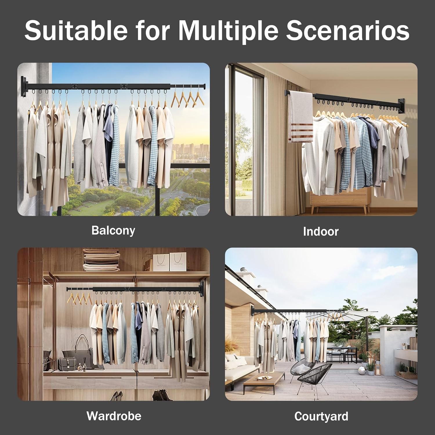 Wall Mounted Clothes Drying Rack, Retractable & Collapsible, Foldable Black-Ring Laundry Hanger