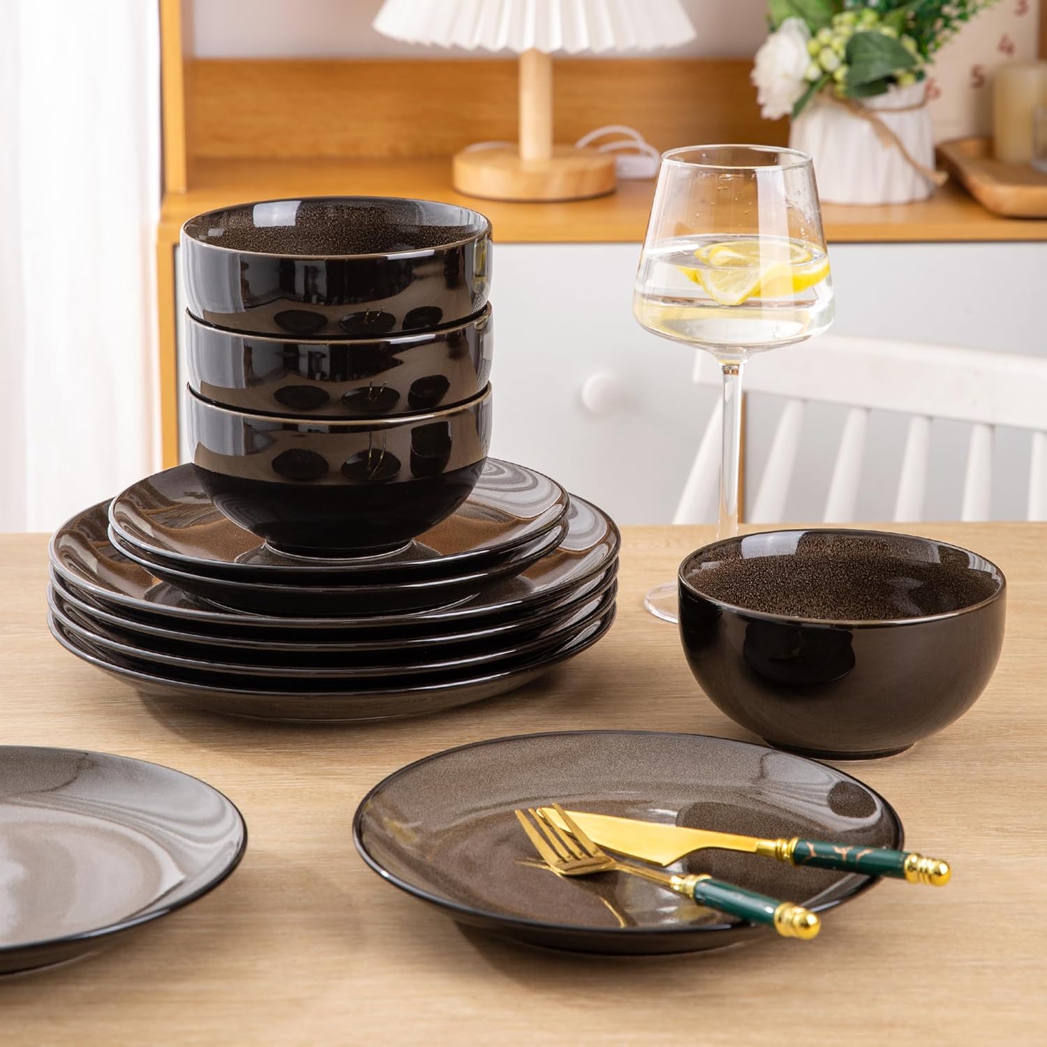 - γSERVICE FOR 4 γ4 pcs of 10.5" dinner plates, 4 pcs of 8.5" salad/appetizer/dessert plates, and 4 pcs of 26 oz soup/cereal/ceramic bowls. It makes a great housewarming gift for newlyweds who appreciate quality and style, or for anyone who has recently moved into a new home or apartment. With this set, you can enjoy your meals in style and create beautiful memories with your loved ones.