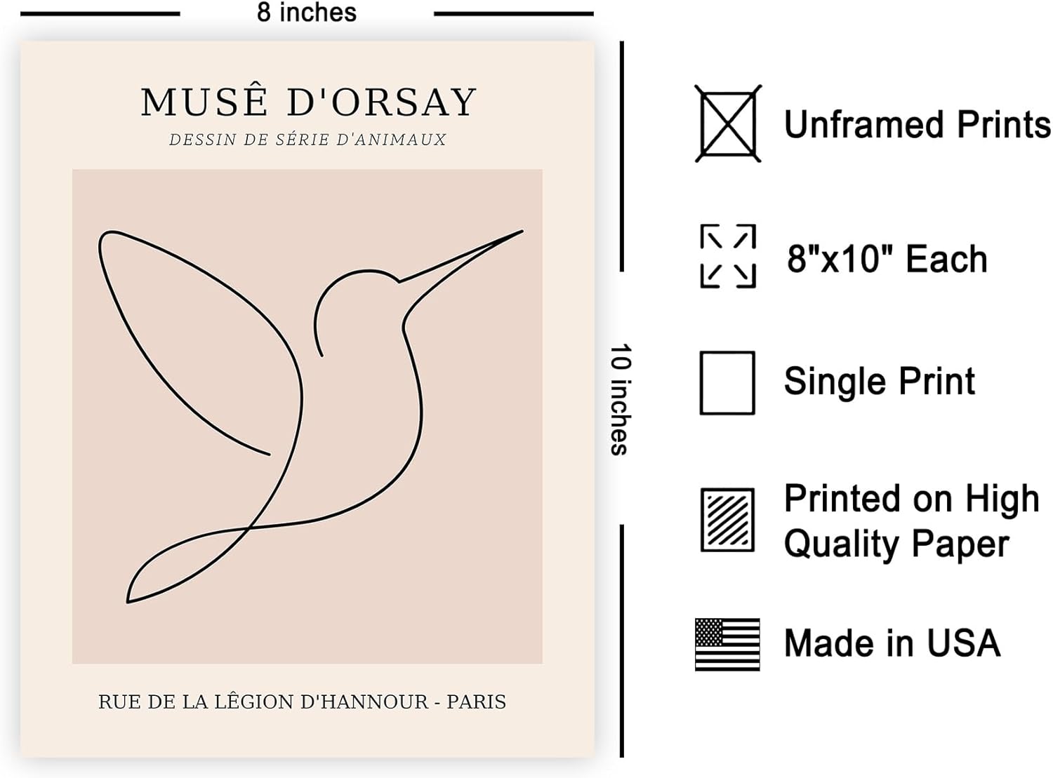 Poster Master Vintage Poster - Retro One Line Hummingbird Drawing Print - Bird Line Art - Minimal Gift for Him, Her, Animal Lover - Abstract Decor for Home, Office - 8x10 UNFRAMED Wall Art