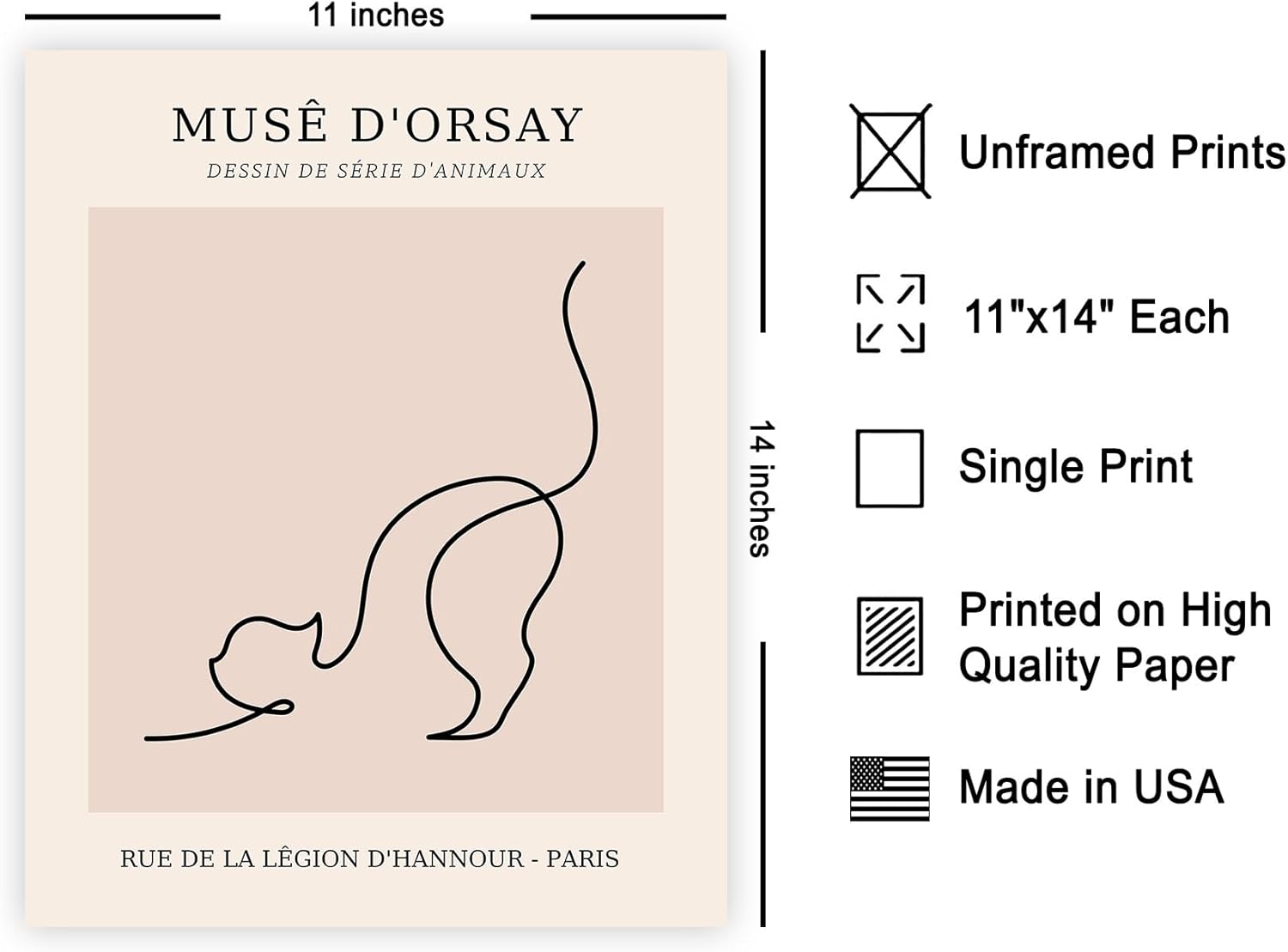 Poster Master Vintage Poster - Retro One Line Cat Drawing Print - Cat Art - Minimal Gift for Men, Women, Animal Lover - Abstract Wall Decor for Home, Office, Bedroom - 11x14 UNFRAMED Wall Art