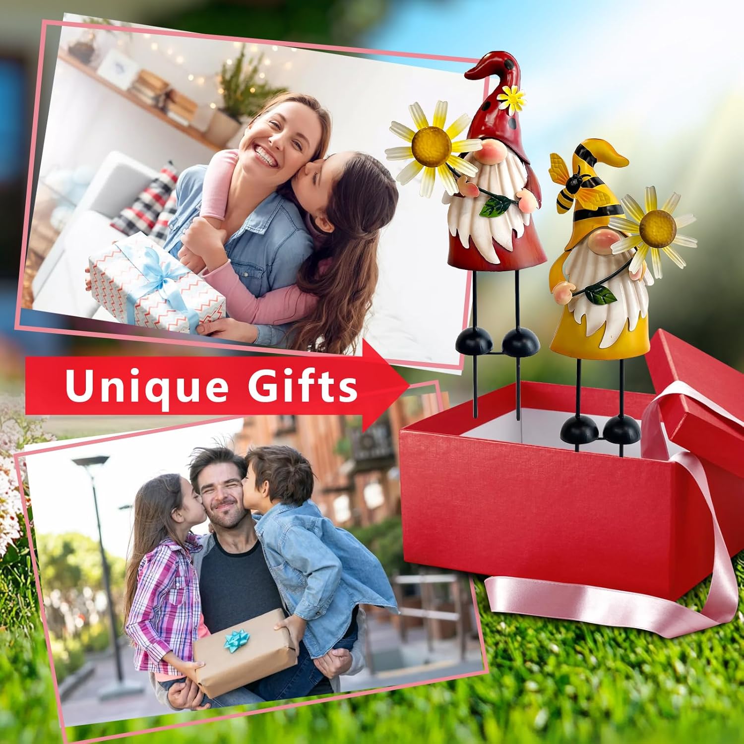 - 【Cute Gnomes Yard Decor】Gnomes metal garden statues with sunflower are great for decorating your garden, add bright colors to your favorite indoor&outdoor potted plants. Create a whimsical vibe to your patio or front yard that will be a wonderful adorable addition