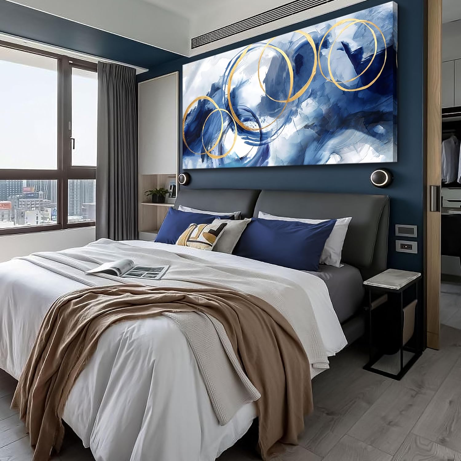 AJAZIKO Large Art For Wall Abstract Wall Decor Blue Modern Art Wall Decor Artwork For Walls Living Room Office Pictures For Wall Navy Gold Contempor Decorations For Bedroom Size 29x58