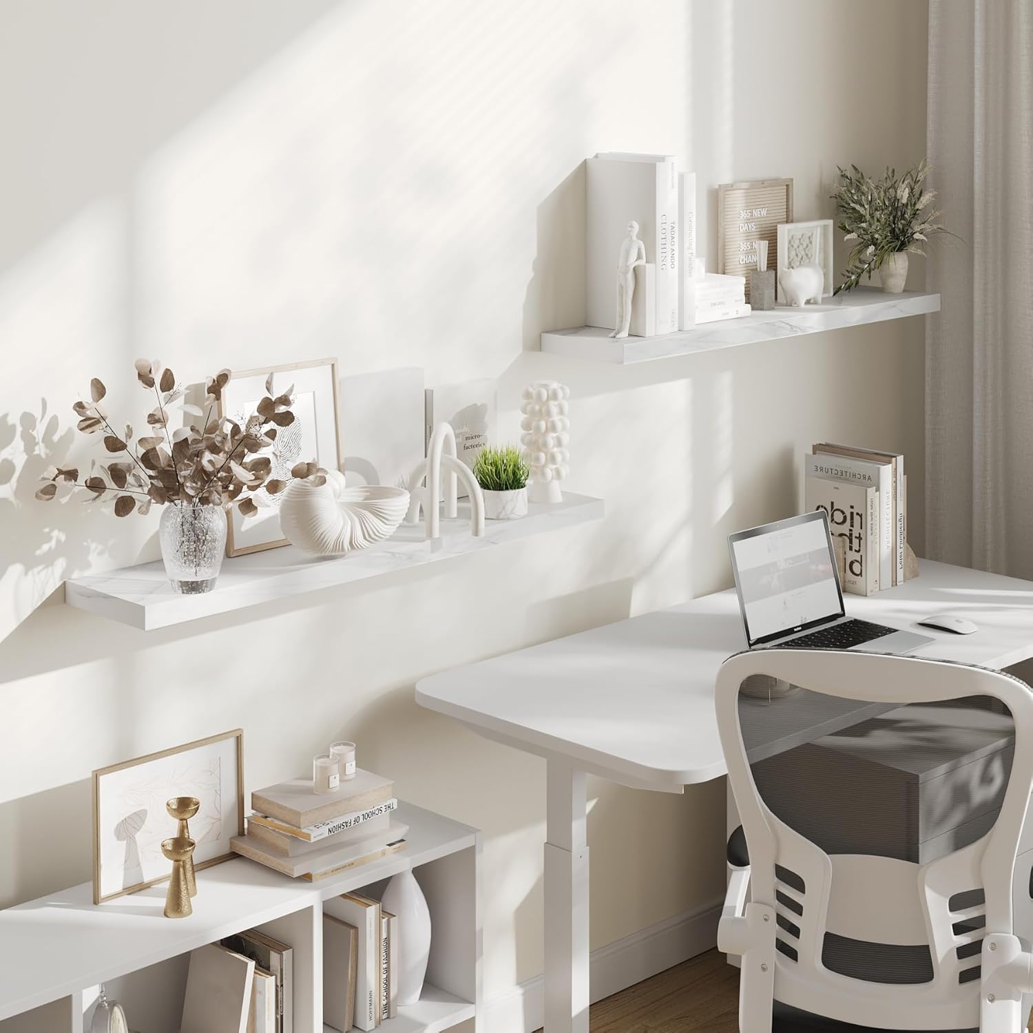 - GREAT FOR ANY ROOM: Our wood floating shelves are made of MDF with a frosted surface texture for a mordern feel that blends perfectly into a variety of different scenes; Having this large floating shelf not only for its decoration effect, but also for its high practicality; It can be used for organizing all household rooms, such as bedroom, living room, study, toilet, cloakroom, even kitchen and warehouse
