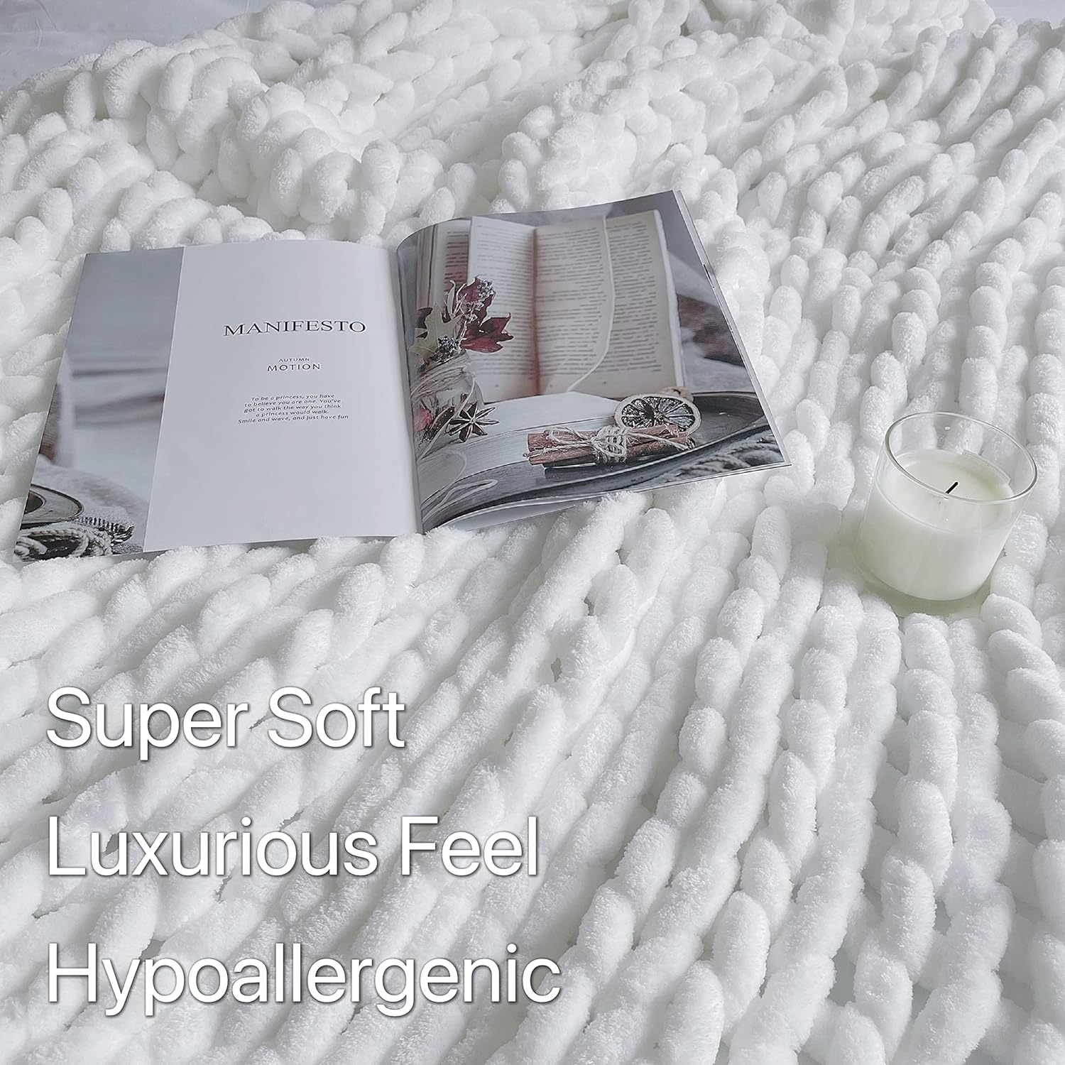 Maetoow Chenille Chunky Knit Blanket Throw (60×80 Inch), Handmade Warm & Cozy Blanket Couch, Bed, Home Decor, Soft Breathable Fleece Banket, Christmas Thick and Giant Yarn Throws,White