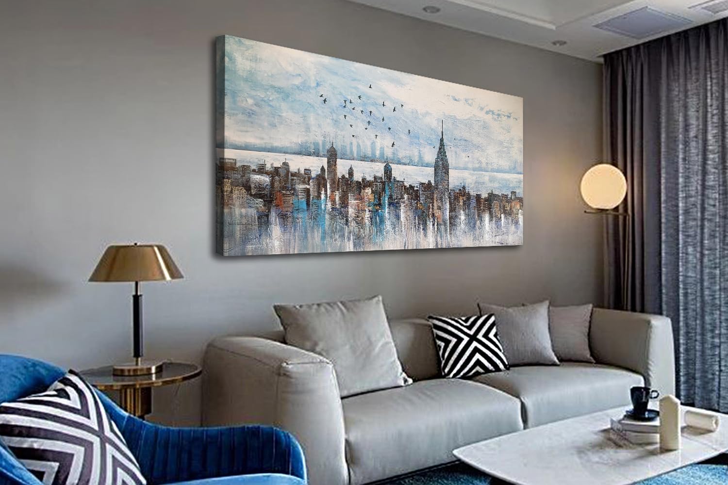 - Cityscape wall art size: 58inx29in(147cmx74cm) gallery wrapped, it's our original design with hand-painted textured. The vibrant colors and intricate details of this piece will bring a sense of tranquility and peace to any room