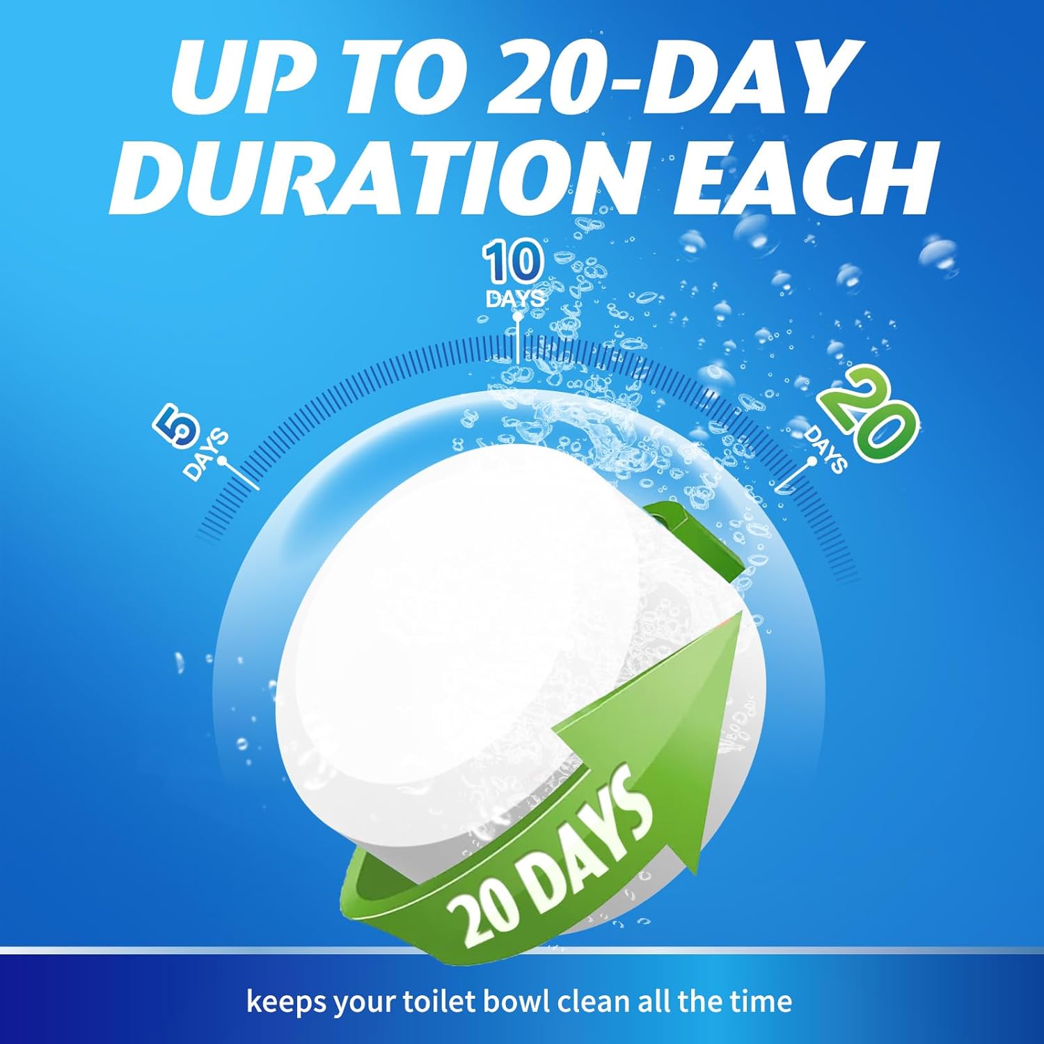 - SUSTAINED-RELEASE TECHNOLOGY: Our toilet cleaner tablets utilize advanced sustained-release technology, ensuring that your toilet bowl stays fresh for at least 15 days. They create a protective film that effectively prevents stains from adhering, saving you from frequent cleaning.