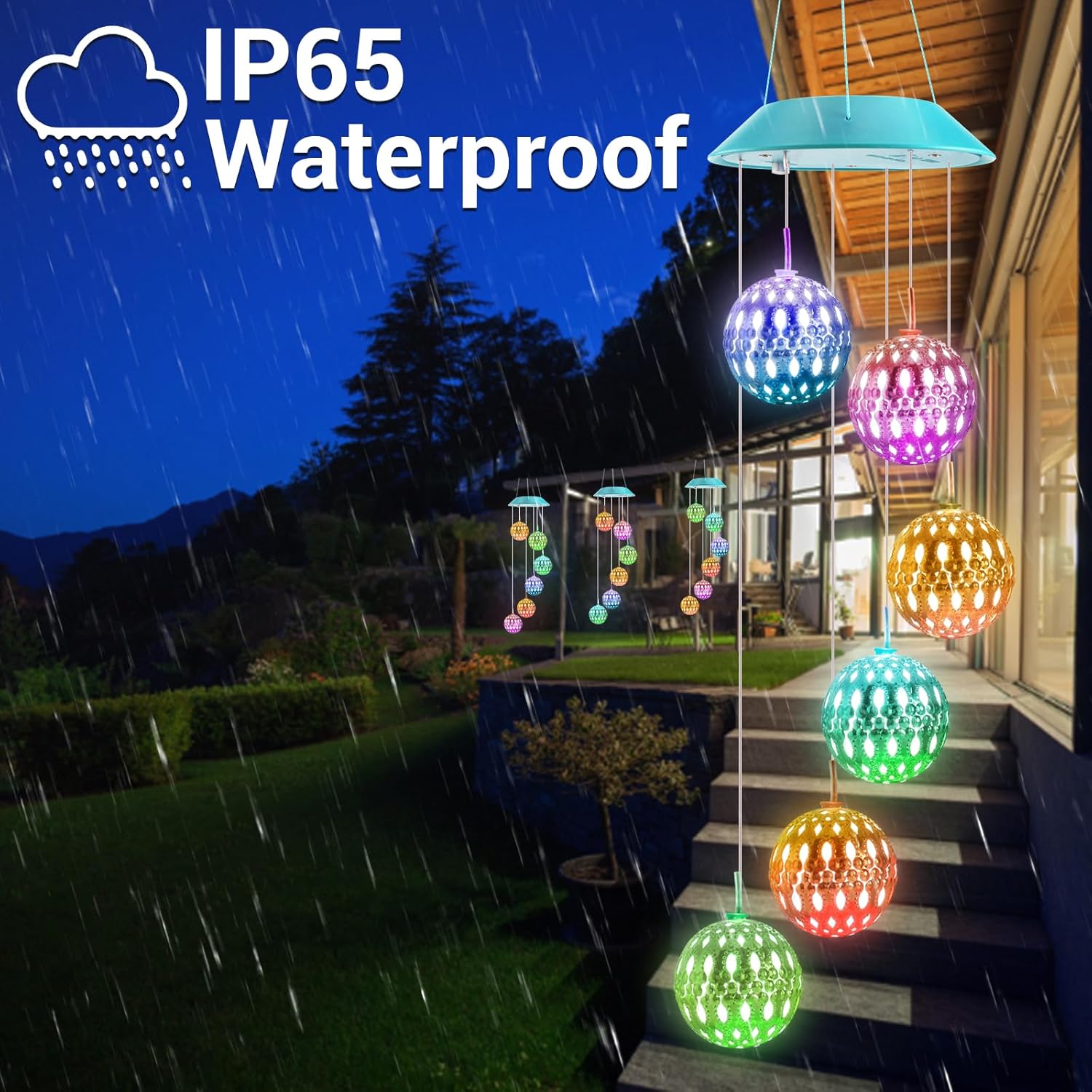 - 【Top Gift Idea】This lovely solar wind chimes will give a surprise to your friends and families. Top gift choice for Easter, birthday, mother day, Thanksgiving, Christmas, Memorial day. Color changing led balls will make romantic and enjoyable atmosphere. If any problems about products, please feel free to contact us via Amazon email box.