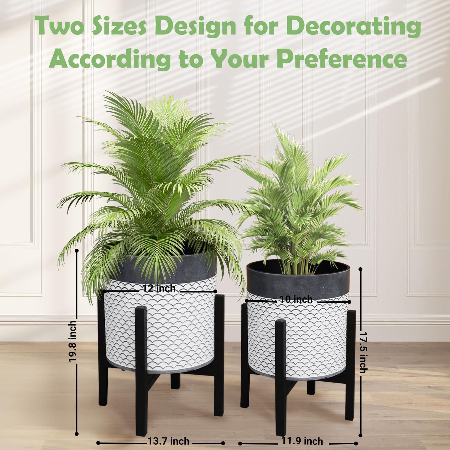 - Two Sizes Combo: Our set of 2 flower pots offers the perfect solution for all your planting needs. The set includes one large pot (12 inches in diameter) and one small pot (10 inches in diameter), providing versatile choices for displaying various plants, from delicate flowers to lush greenery.
