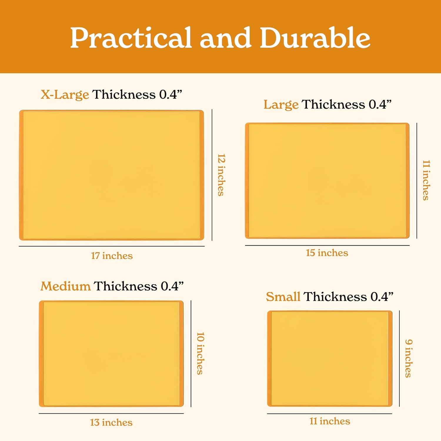 - 4-Pack with Holder: This cutting board set includes small, medium, and large cutting board sizes for every prep need. It also comes with a compact holder that neatly organizes all boards vertically, keeping your countertops clutter-free while ready for any chopping task.
