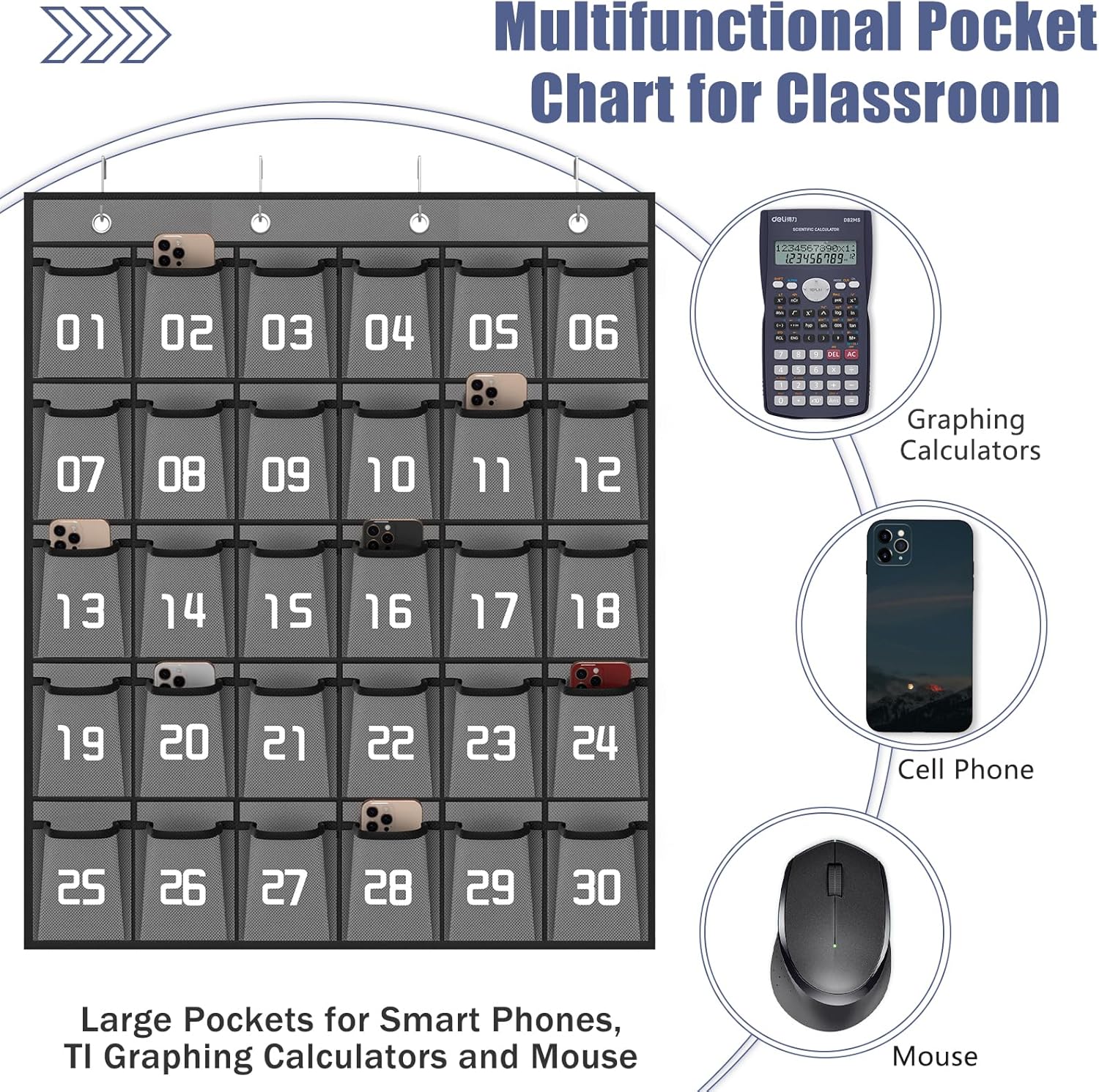 - 【Cell Phone Pocket Chart for Classroom】Used as classroom phone storage and calculator storage. Perfectly to hold students cell phone, calculators in class. Let students focus more on studying, say goodbye to students playing with their phones in class and create an efficient classroom