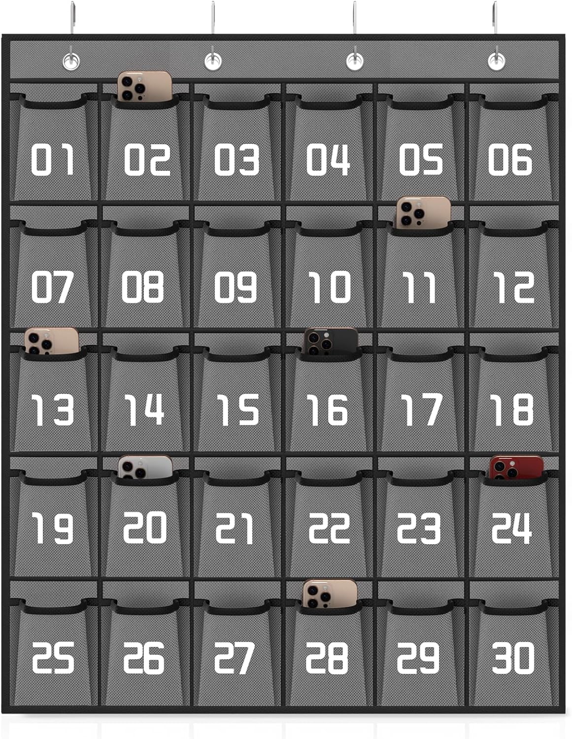 Loghot Classroom Accessories Closet Pocket Chart for Cell Phones Holder Wall Door Hanging Organizer (30 Pockets Gray)