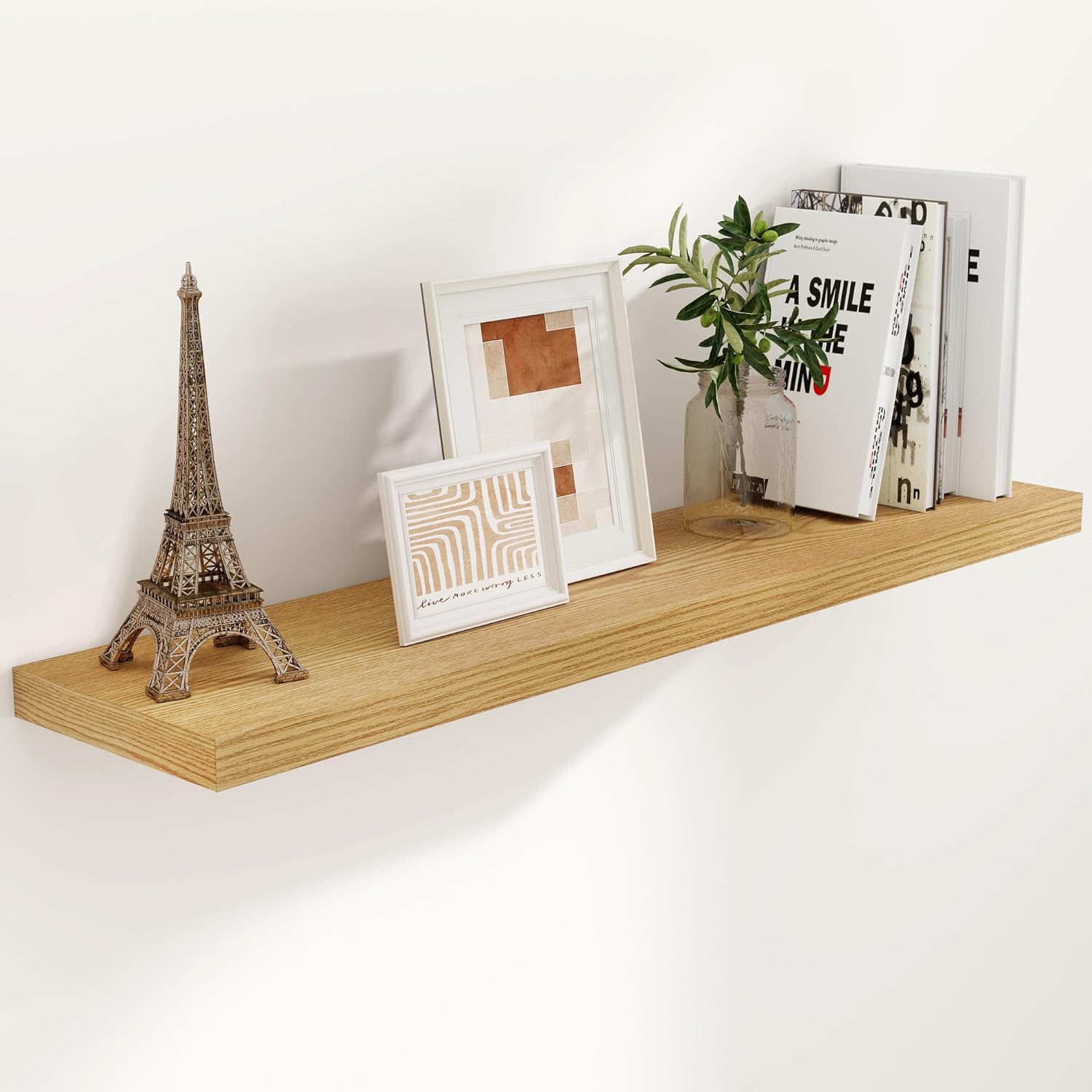 Floating Shelves 48 Inch Long, 48"W x 9"D Wall Shelf Invisible Bracket, 9 Inch Deep Floating Shelf for Wall, Rustic Wooden Shelves for Living Room, Kitchem, Bedroom, Oak Color, Set of 1