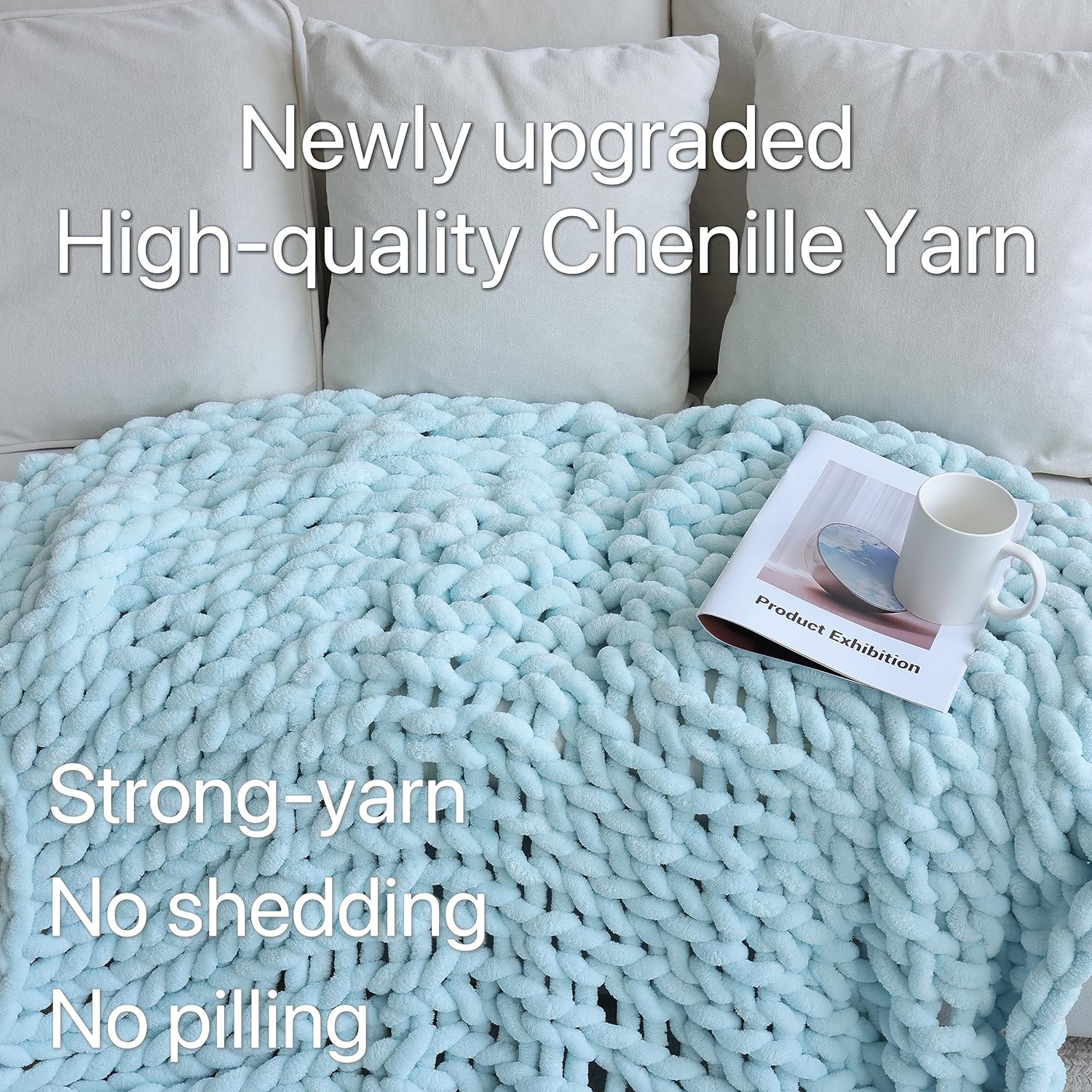 Maetoow Chenille Chunky Knit Blanket Throw (30×40 Inch), Handmade Warm & Cozy Blanket Couch, Bed, Home Decor, Soft Breathable Fleece Banket, Christmas Thick and Giant Yarn Throws, Baby Blue