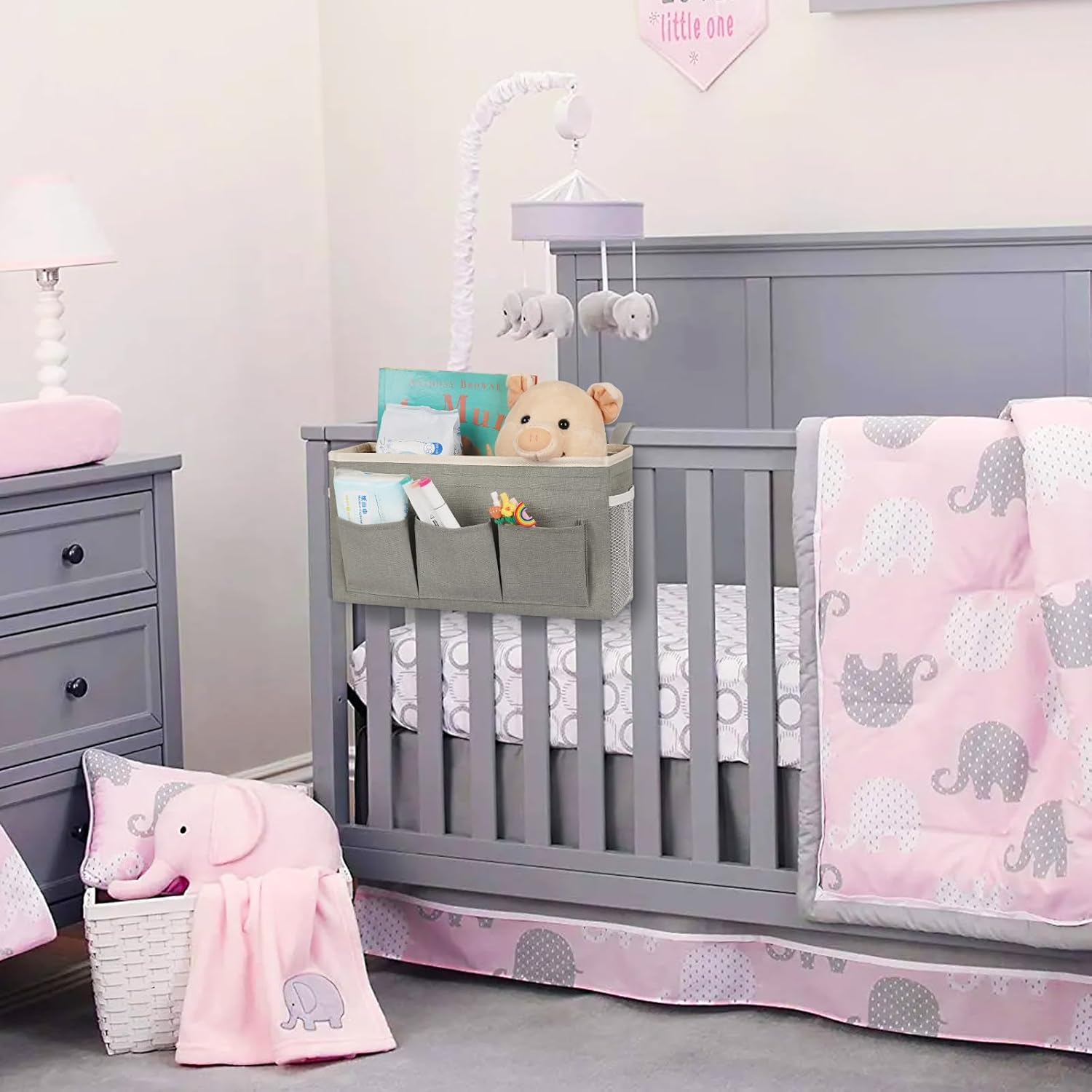 - γStrong Bearing CapacityγIn addition to the metal hook, the bedside organizer also added adjustable straps on both sides to help the bedside caddy to be additionally fixed in place, bottom cardboard added to hold basket shape, enduring enough to bear heavy weight and prevent sagging.