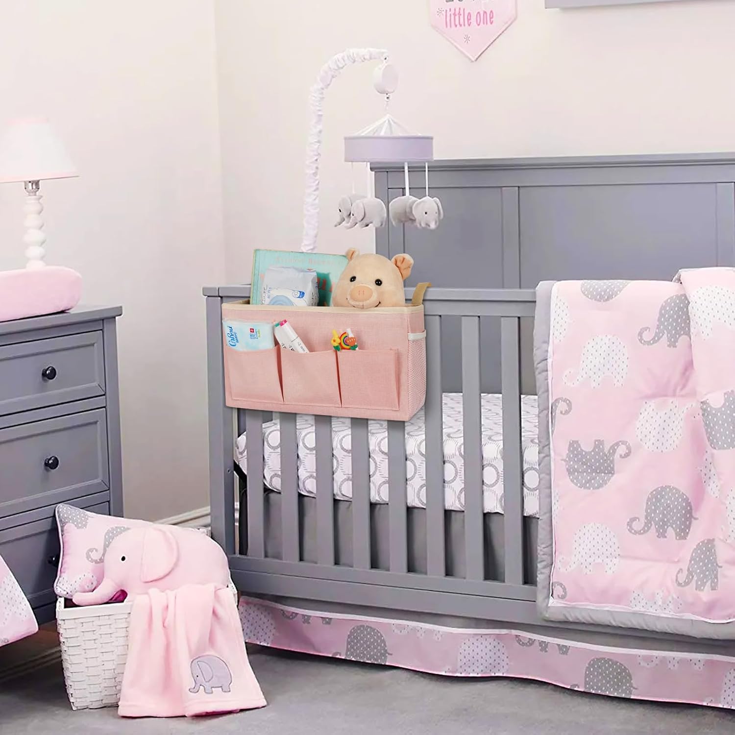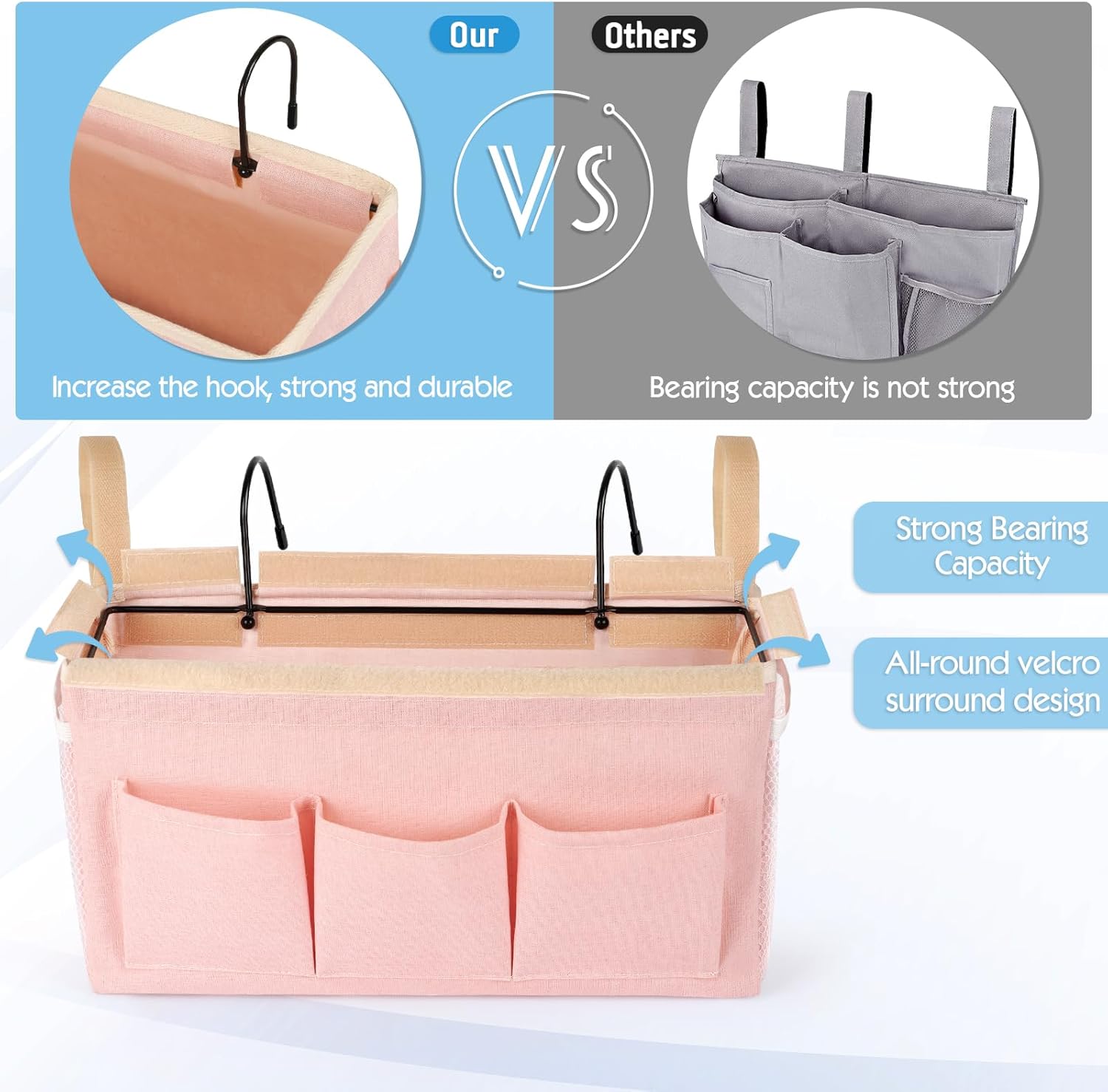 - γStrong Bearing CapacityγIn addition to the metal hook, the bedside organizer also added adjustable straps on both sides to help the bedside caddy to be additionally fixed in place, bottom cardboard added to hold basket shape, enduring enough to bear heavy weight and prevent sagging.