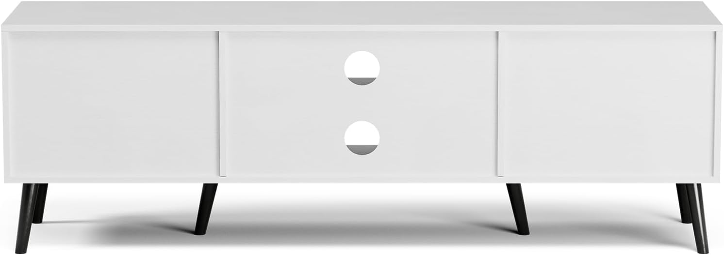 - 【CONVENIENT STORAGE】 Middle shelf and 2 large cabinets storage your favorites. And more, 2 cord holes behind arrange your wires well. Display or Hide? This mid-century tv stand is good at that