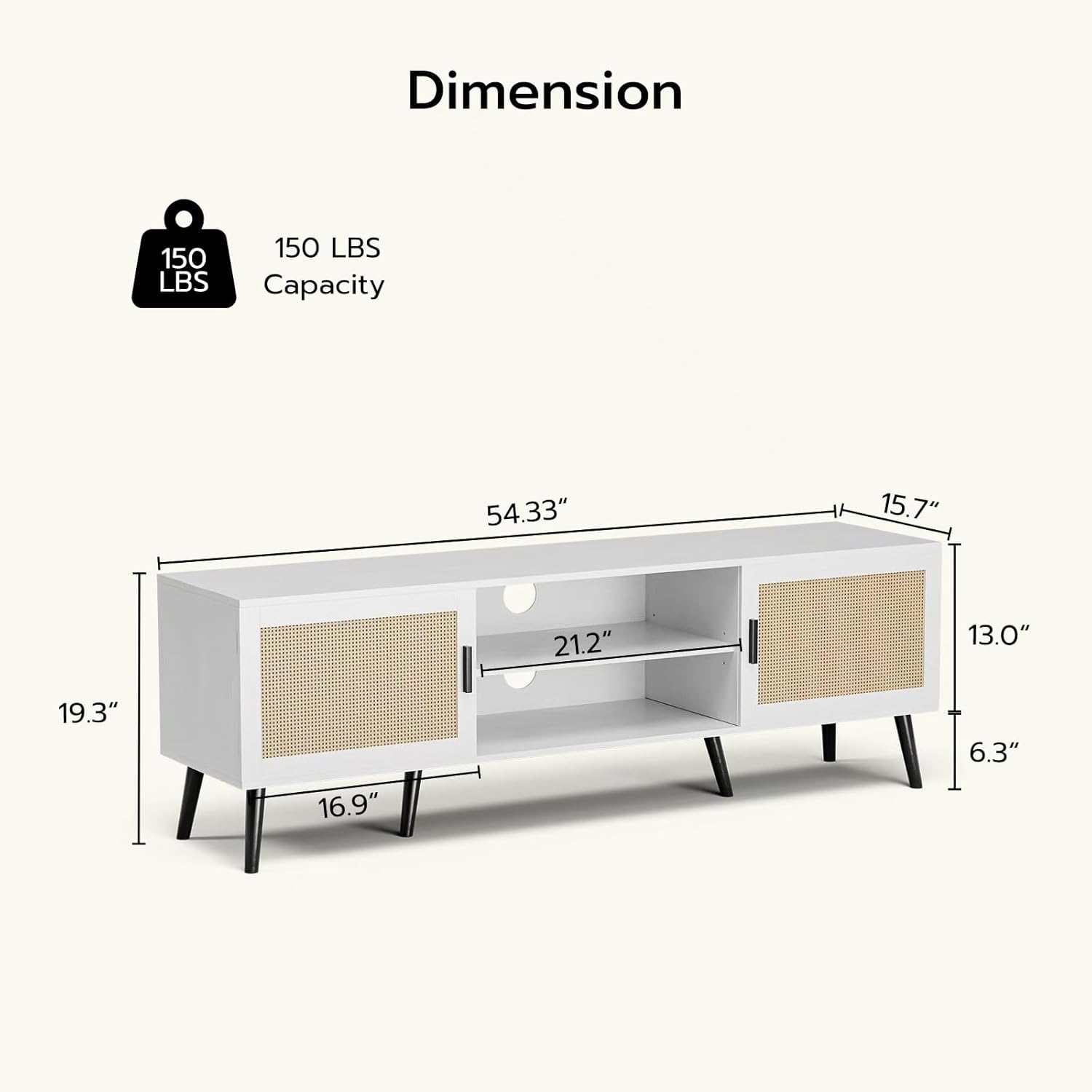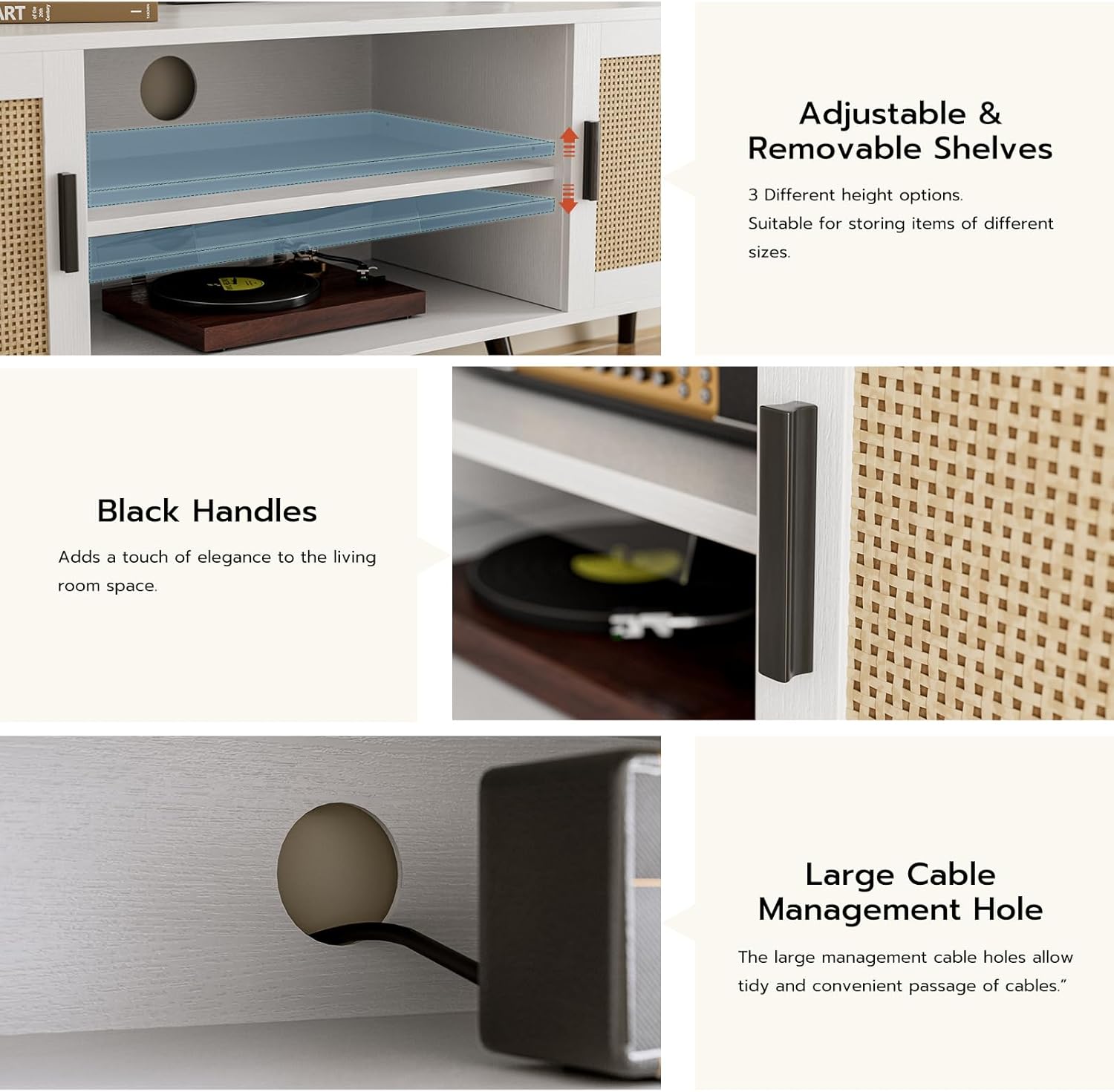 - 【TV COMPANION】: Rattan-decorated doors match the natural surface, this TV stand with storage blends modern and boho style. If your living room is calling for a new upgrade with storage, this TV stand is a great addition