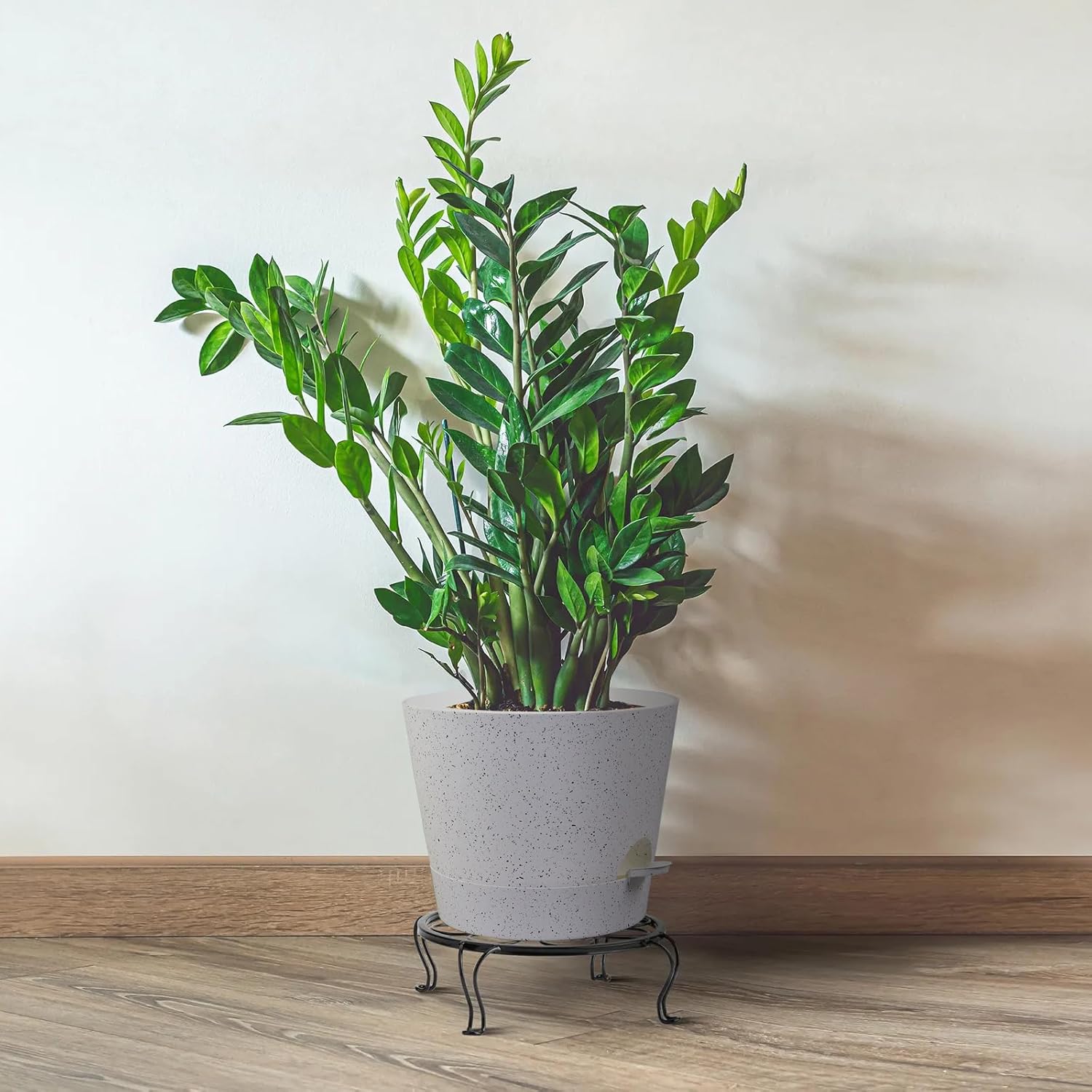 Self Watering Pots for Indoor Plants,12 inch Planters with Drainage Holes Plastic Flower Pots with Deep Reservoir, White Speckles