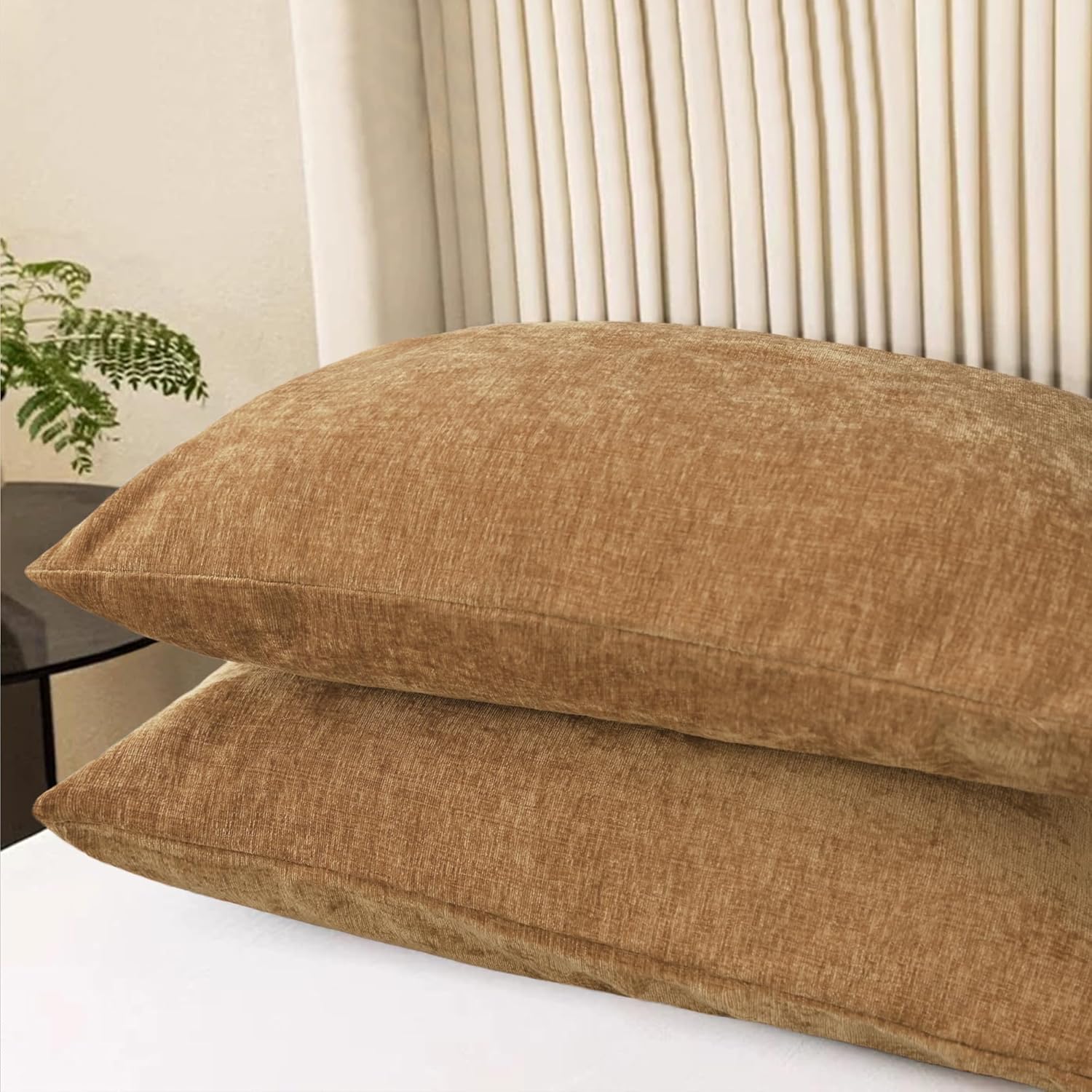 CaliTime Throw Pillow Covers Decorative 20 X 26 Inches Pack of 2 Cozy Chenille Standard Pillow Shams Cases for Couch Sofa Bed Living Room Home Apricot Brown
