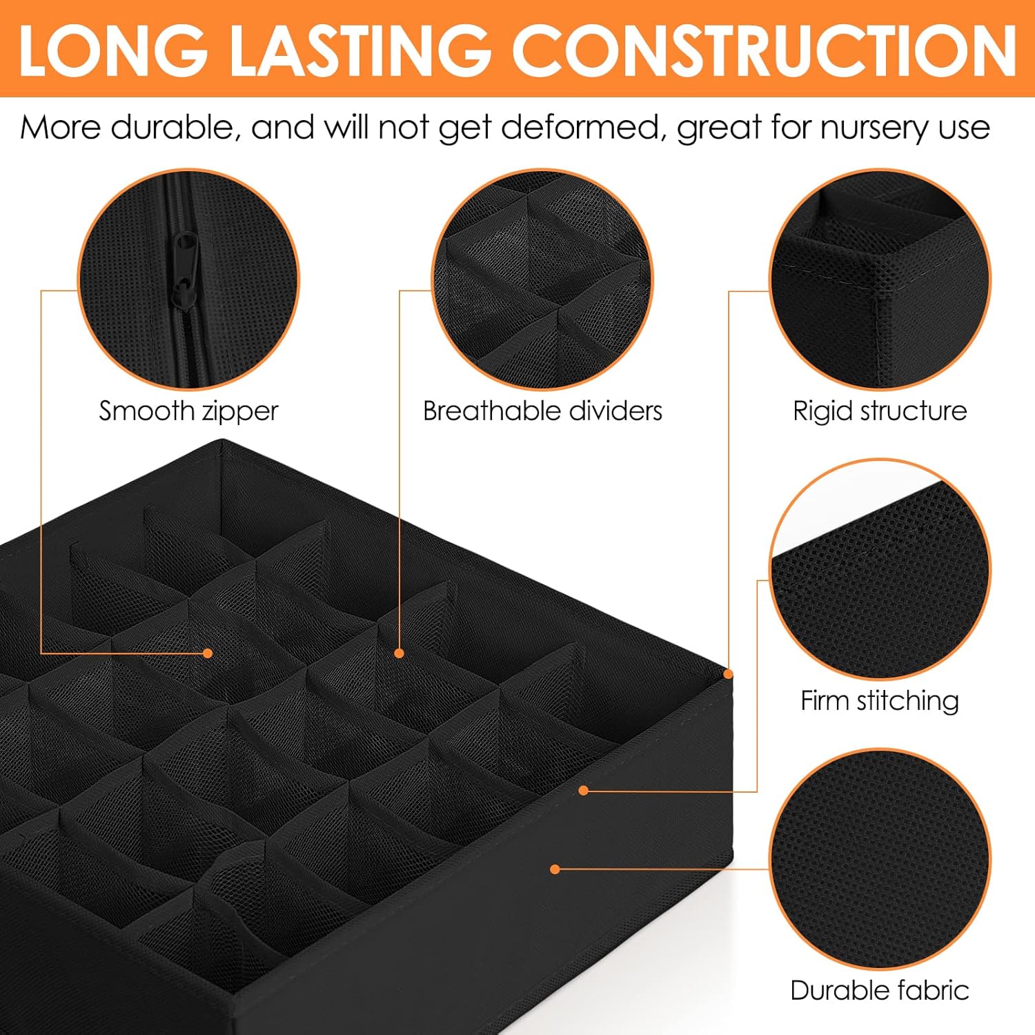 - γQUALITY CONSTRUCTIONγ Made of 80gsm thick non-woven fabric and reinforced stitching, our wardrobe clothes organizer is much more durable for long term use. 3.0mm Plastic boards added at the 4 sides are breathable and odorless, so great for nursery room use. Also sturdy enough, so stackable and not easy to deform.