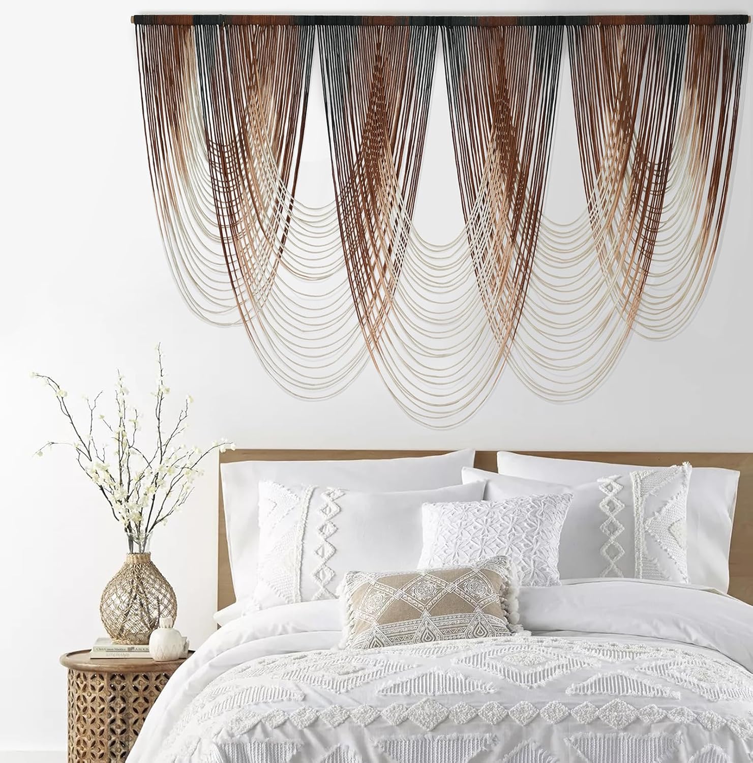 - Occasion: above bed headboard, living room wall, gallery wall, entrance hall wall, etc. The macrame craftsmanship art like this will suit perfectly a minimalist living room, bohemian bedroom, and warm mid-century office decoration.