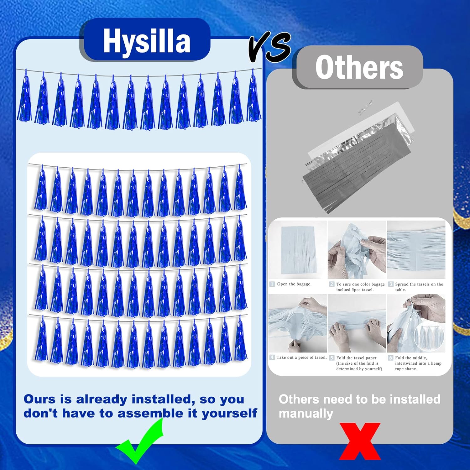- 【Perfect Party Decoration】The blue tinsel garlands are designed in a metallic Fringe, bright, and beautiful, at the same time, they shine in the sun, and these gorgeous tassel garlands create a wonderful backdrop or centerpiece for your party space. and bring you, your family, and your friend's good Visual effects. your party many emotional and touching moments where a lot of pictures will be taken and everybody will have a wonderful time together.