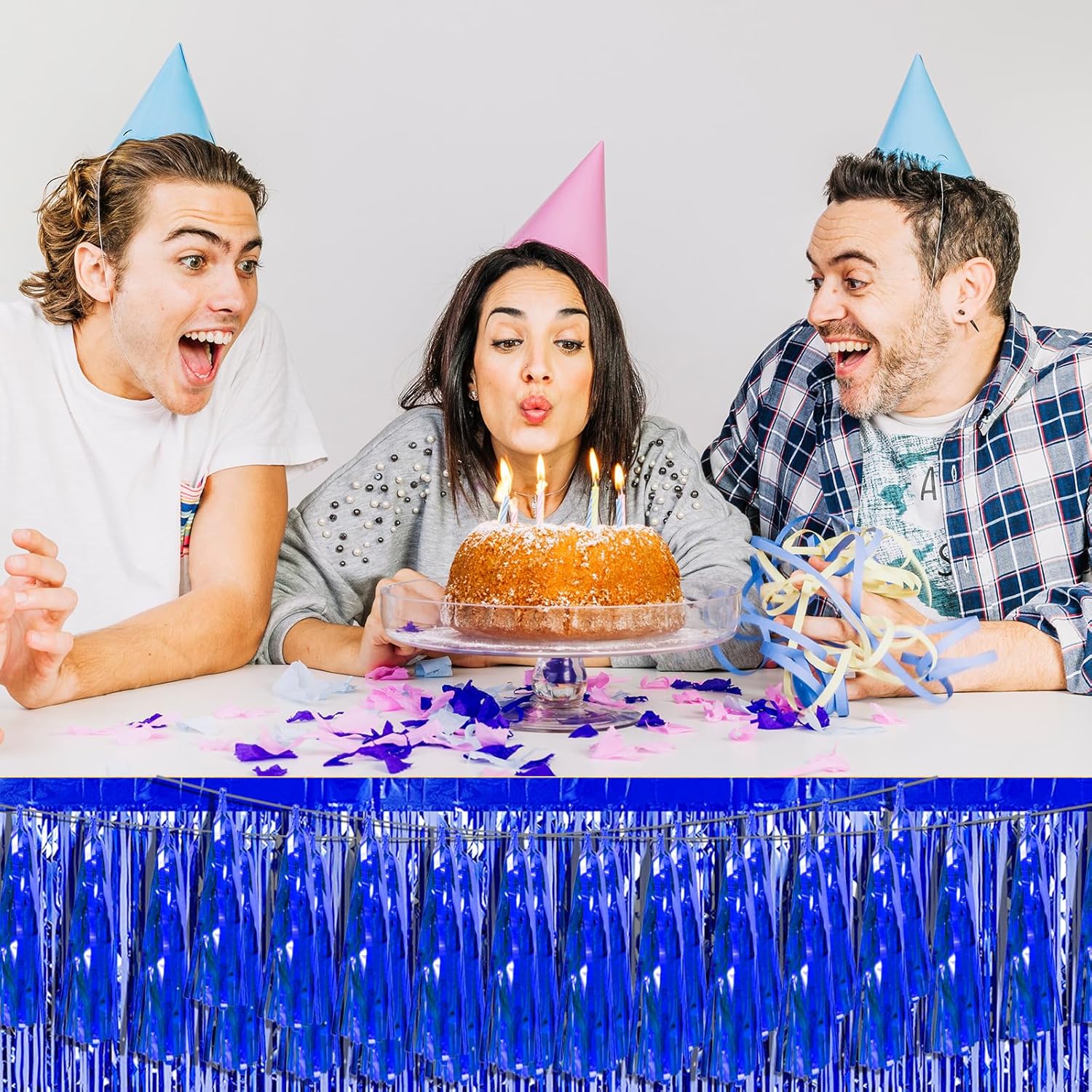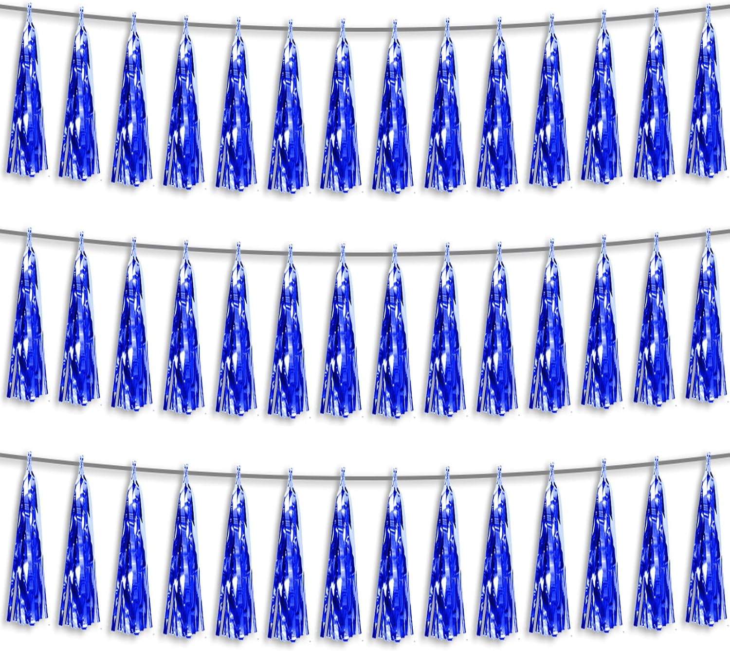 3P Blue Foil Fringe Metallic Tassel Streamers Banner Tassel Garland for Parade Floats, Bachelorette, Wedding, Birthday, Halloween, Christmas, Bridal/Baby Shower Party Decorations