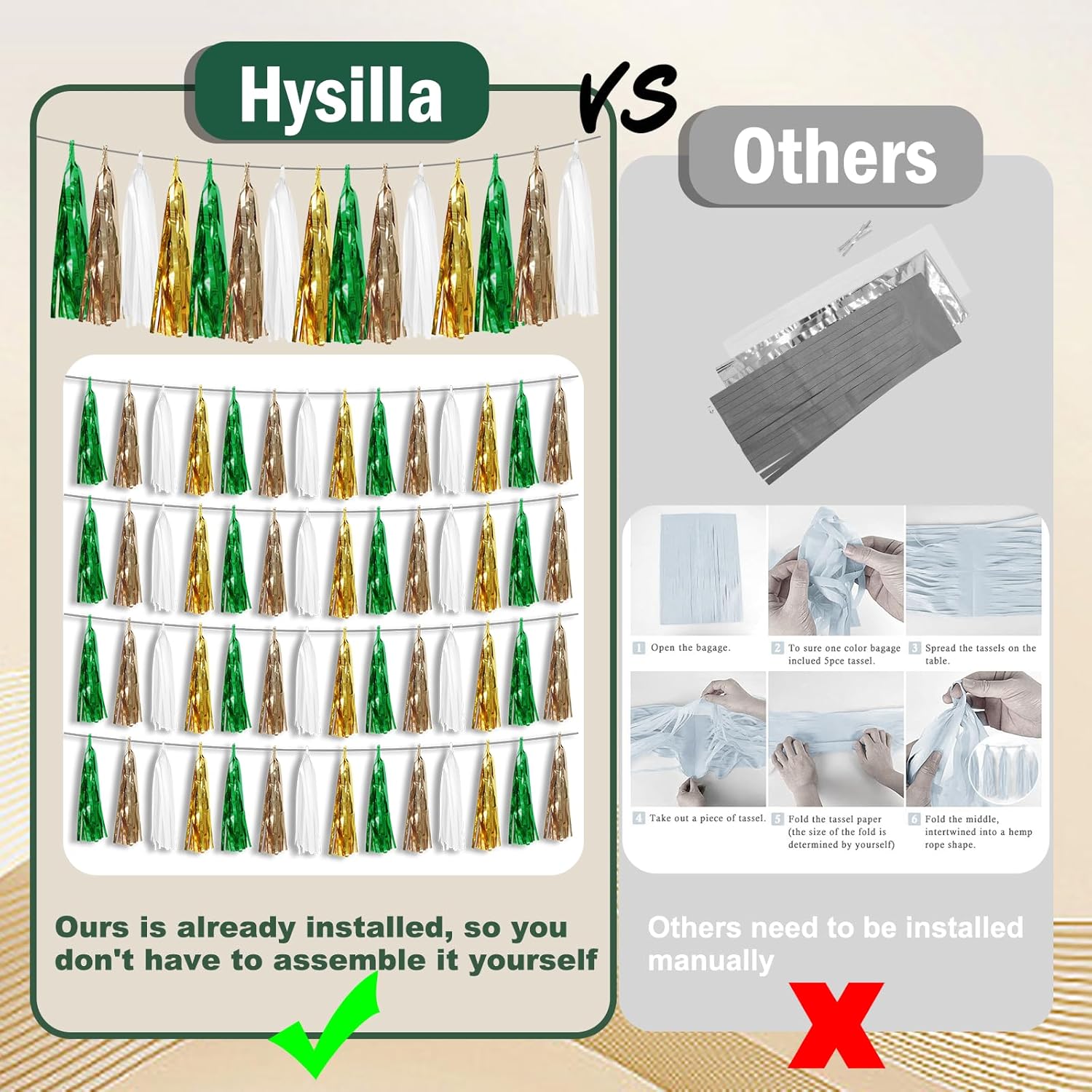 - 【Sage Green Beige Mint Gold Party Supplies Set】: The total length of the sage green beige mint gold birthday tassels banner is 29.5 feet 45tassels, divided into 3 strips, each 9.8 feet long. Each banner contains 15 tassels, and each tassel measures 14 inches, for birthday decorations many occasions, and so on