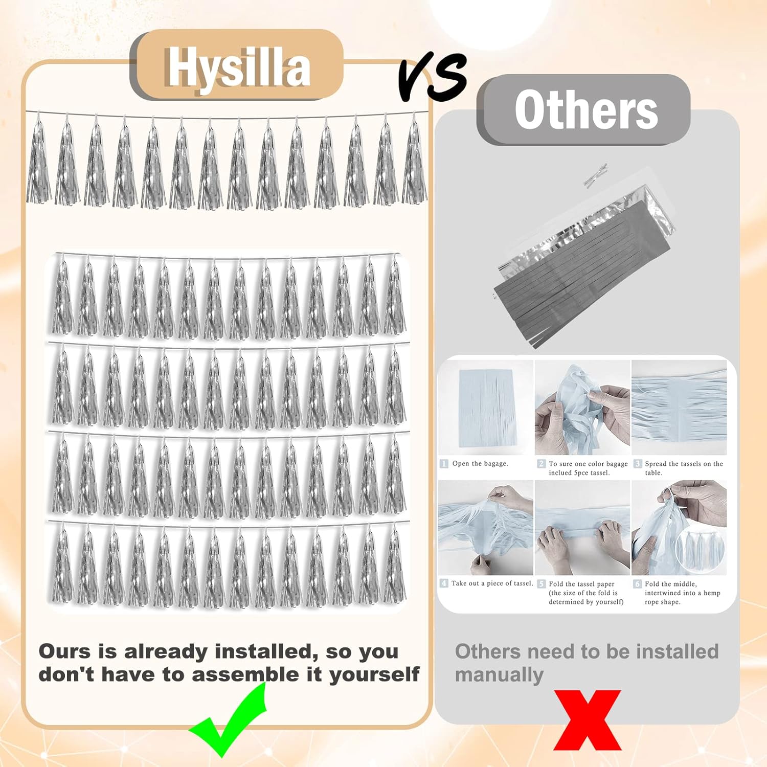 - 【Silver Party Supplies Set】: The total length of the silver birthday tassels banner is 29.5 feet 45tassels, divided into 3 strips, each 9.8 feet long. Each banner contains 15 tassels, and each tassel measures 14 inches, for birthday decorations many occasions, and so on