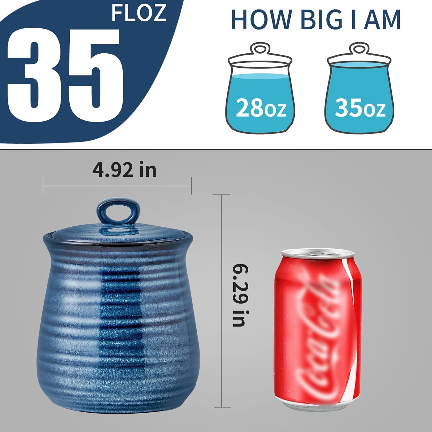 Hasense Ceramic Food Storage Jar with Airtight Seal Lid, 35 Ounce Kitchen Canister Container for Cookie, Ground Coffee, Pasta, Cereal, Flour, Sugar, Rice, Seasoning and Pet Treat, Navy