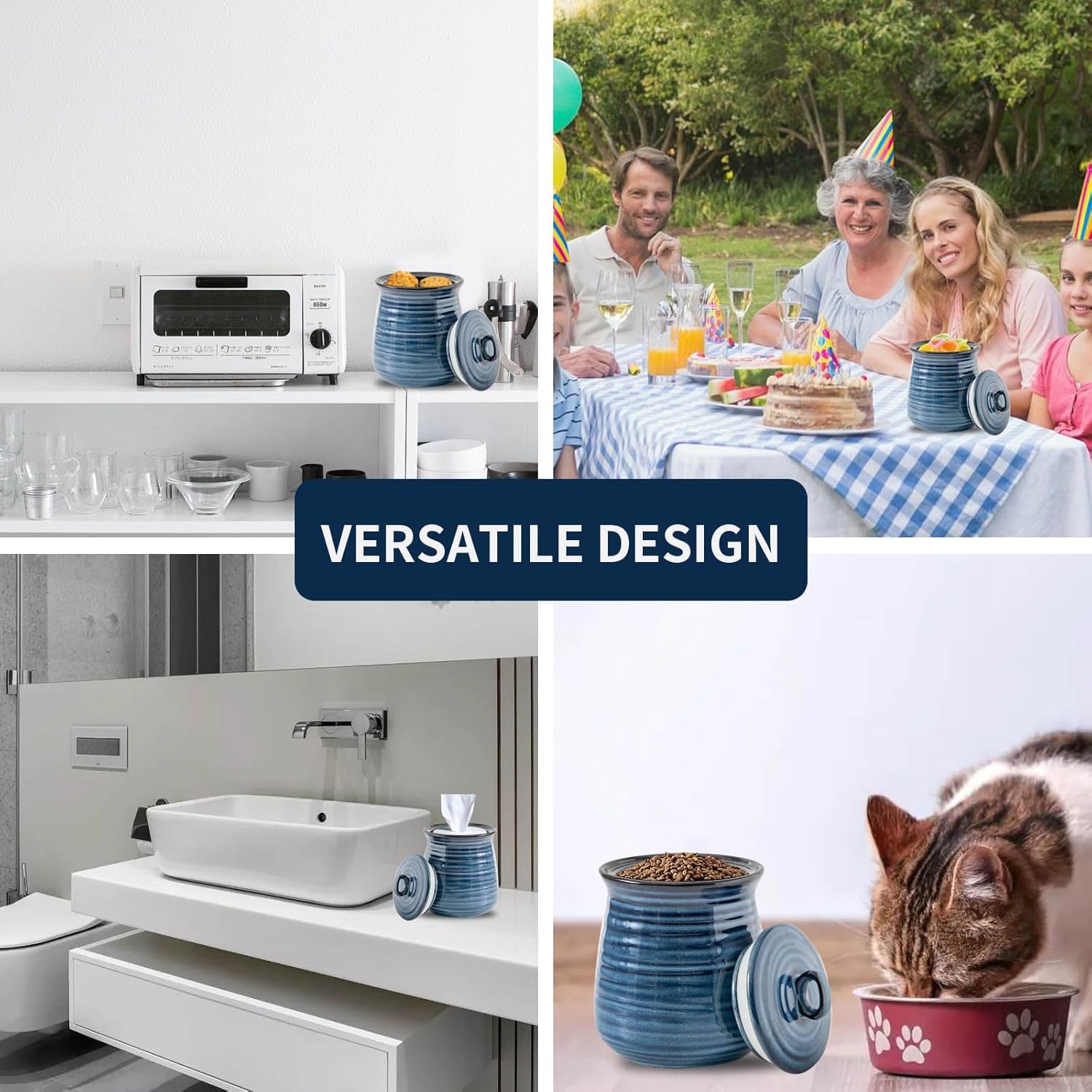 - VINTAGE AND RETRO DECOR: Hasense coffee canister designs with navy horizontal stripe which can add a splash of color to your kitchen. Our blue cookie container is a wonderful decor for you kitchen, bathroom, pantry and coffee bar.