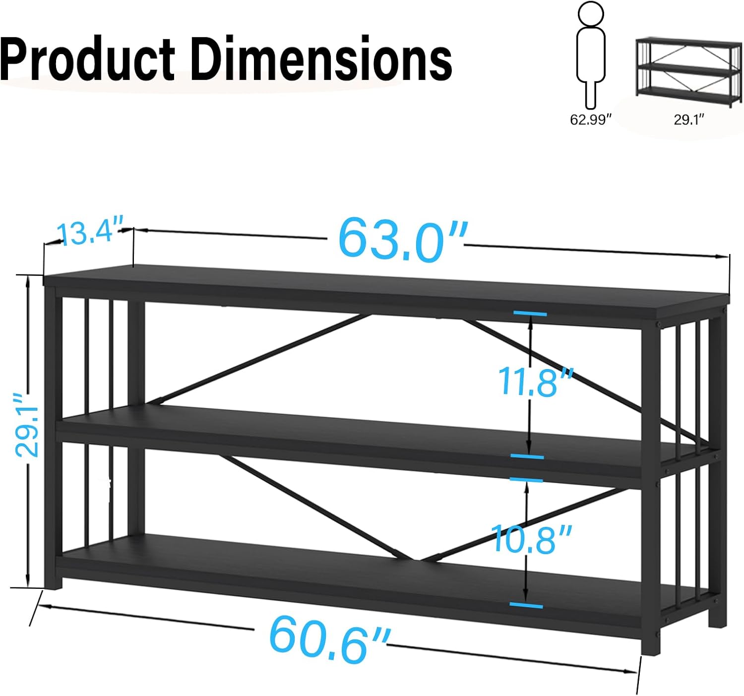 LVB Black Entryway Table, Modern Narrow Console for Hallway, Industrial Farmhouse Foyer Table with Storage Shelves, 63 Inch