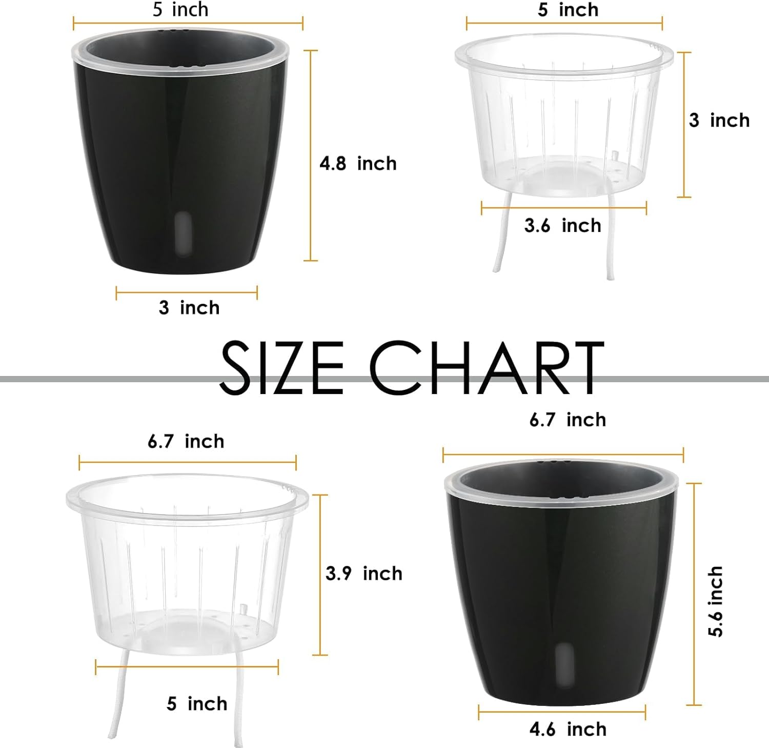 - Clear Wick Inner Pot with Drainage Holes: Each plant pot includes a transparent wick inner pot, allowing air and water circulation around the roots while making it easy to check plant growth. Ideal for orchids and other delicate plants that need extra root care!