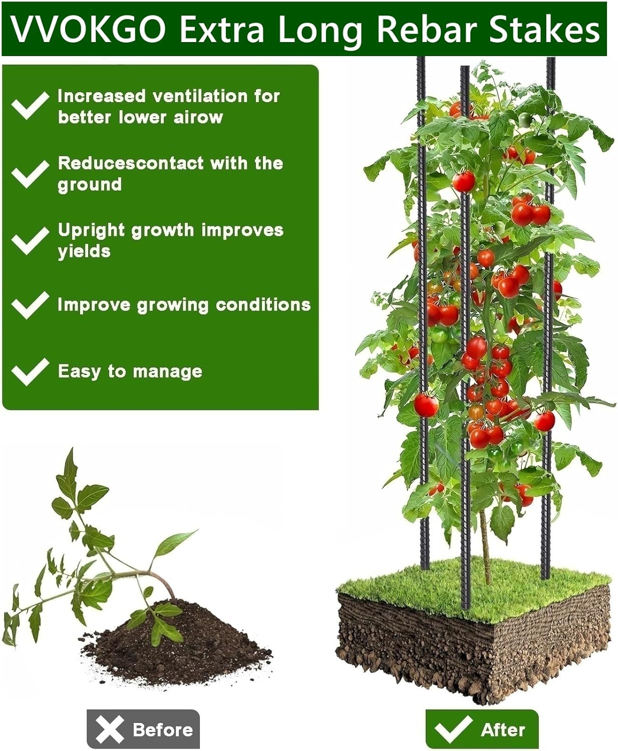 - Easy Installation - VVOKGO sturdy plant metal sticks support stakes with chisel pointed end can be used for hard clay and rocky soils, makes penetrating and removal easily. The metal spikes for ground can be penetrated deeper into the ground