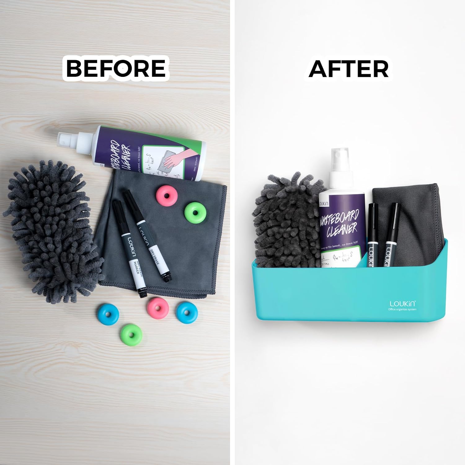 loukin Magnetic and Adhesive Marker Holder, Dry Erase Accessory Tray, Magnetic Storage Organizer for Whiteboard, Glass or Refrigerators (Sky Blue)