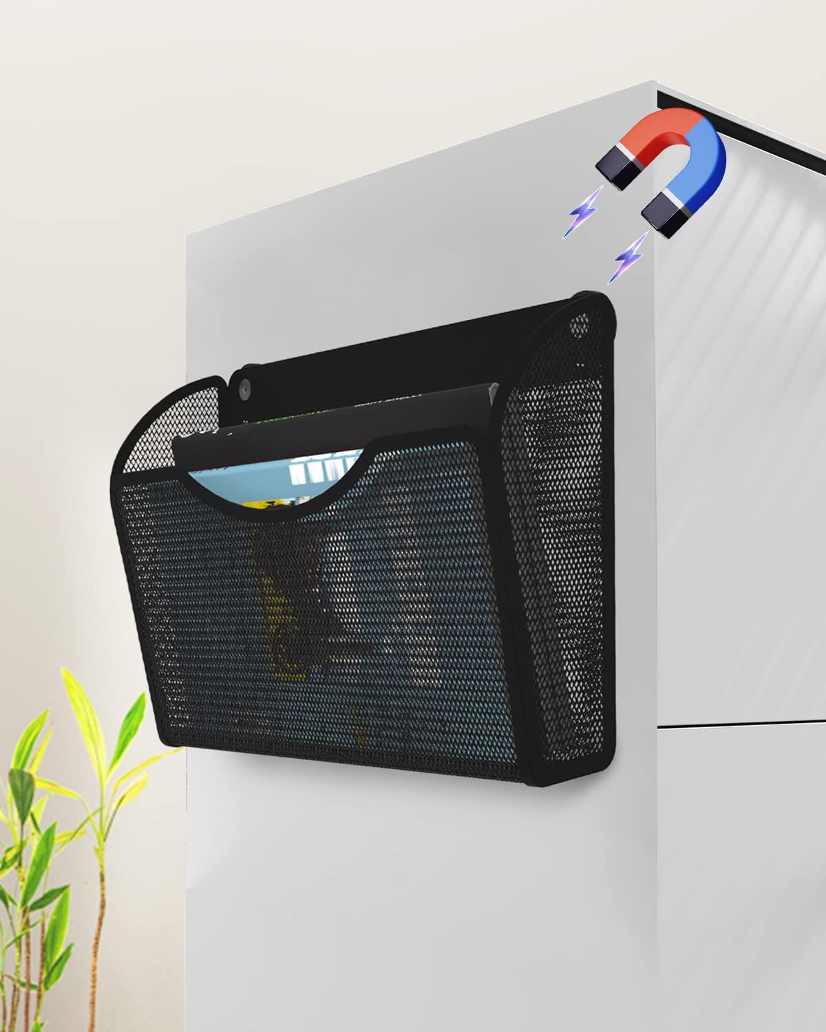 - MULTIPLE USES - You can put the magnetic file holder on the side of your filing cabinet, or on your refrigerator, whiteboard, etc. to reduce clutter on your desk and keep it tidy. It can also act as your magnetic mail holder,magnetic bill organizer, no more lost bills or mail