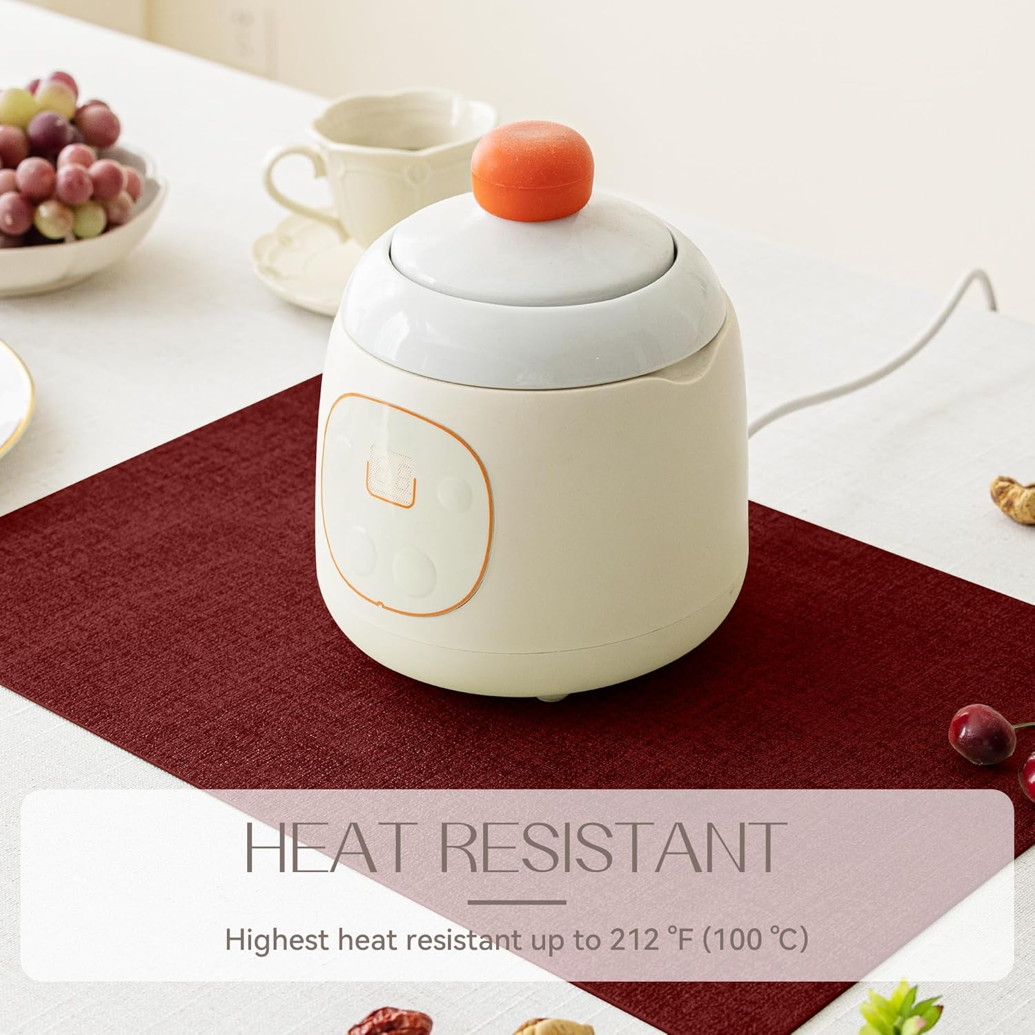 - LONG-LASTING & HEAT-RESISTANT: Both sides are made of high quality and heat -resistant faux leather. The highest heat resistance temperature of the placemat reaches 212℉/100 ℃.It's ideal for protecting your table's surface from hot dishes and liquid spills.