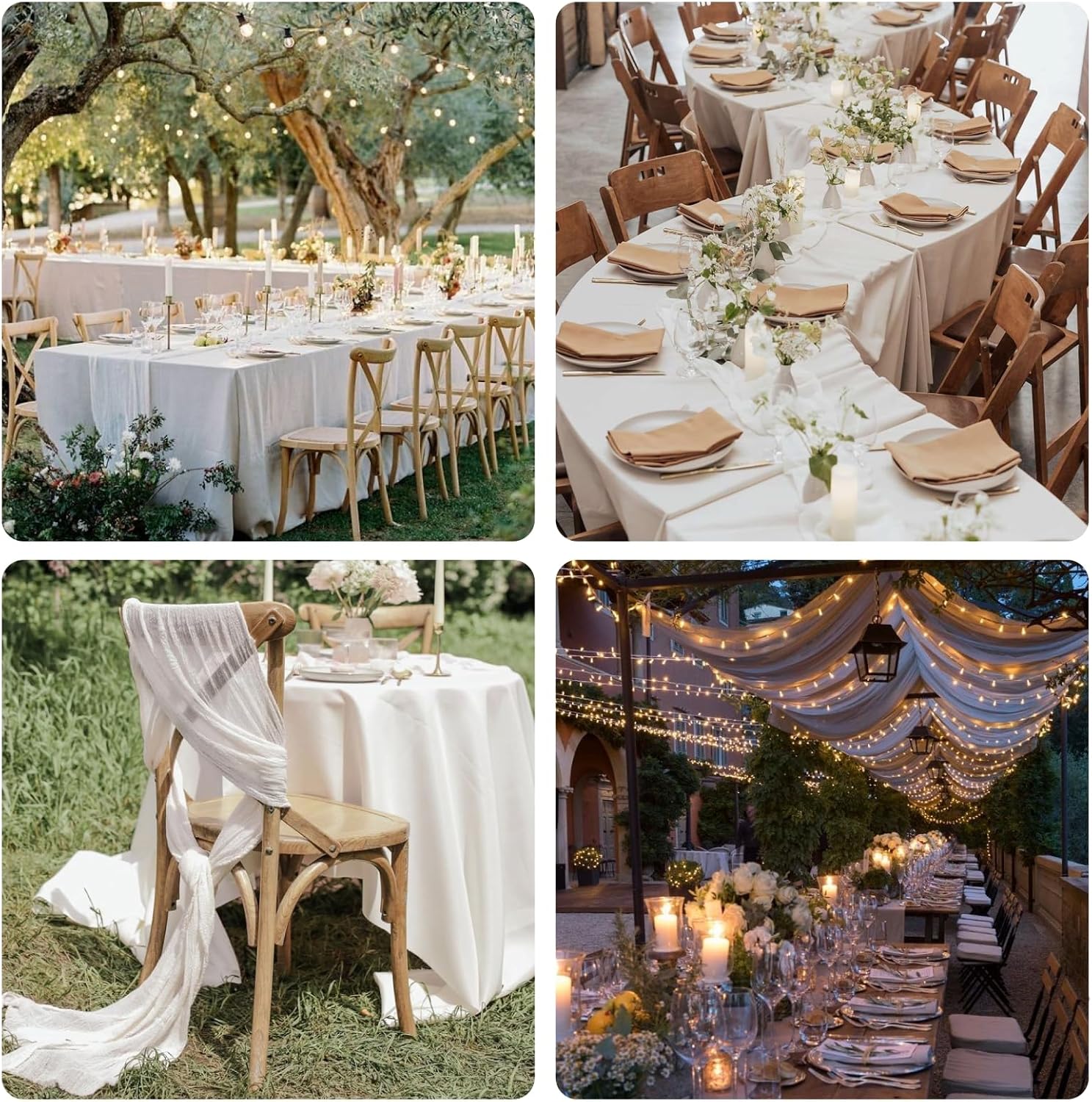 - 【Diversified Use】Boho cheesecloth Table Runner is necessary choice for beautifying tables. It's used for home decor, outdoor events, formal and informal setting in all seasons. Such as wedding decor, baby shower, bridal showers, parties, engagement banquet, Valentine's Day, Thanksgiving, Christmas.