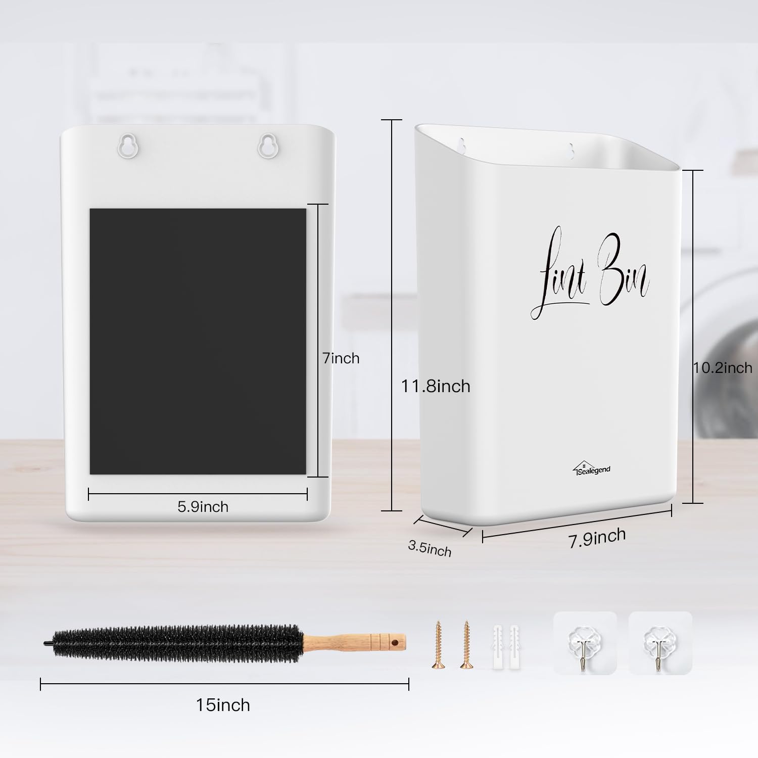 Sealegend Magnetic Lint Bin for Laundry Room with Dryer Lint Brush, Wall Mounted Trash Can Space-Saving Laundry Organization and Storage, White