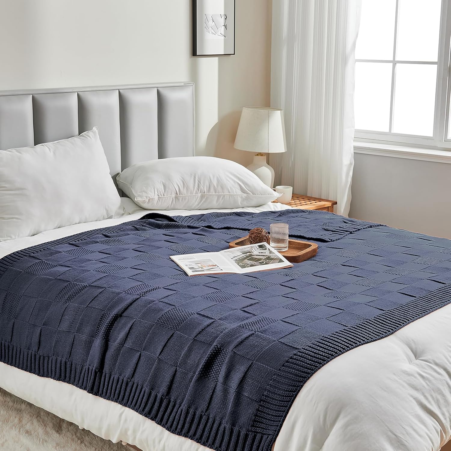 CozeCube Check Knit Throw Blanket, Steel Blue Checkered Throw for Couch, Decorative Christmas Soft Cozy Warm Knitted Blanket for Bed Sofa Living Room, 60"X80"
